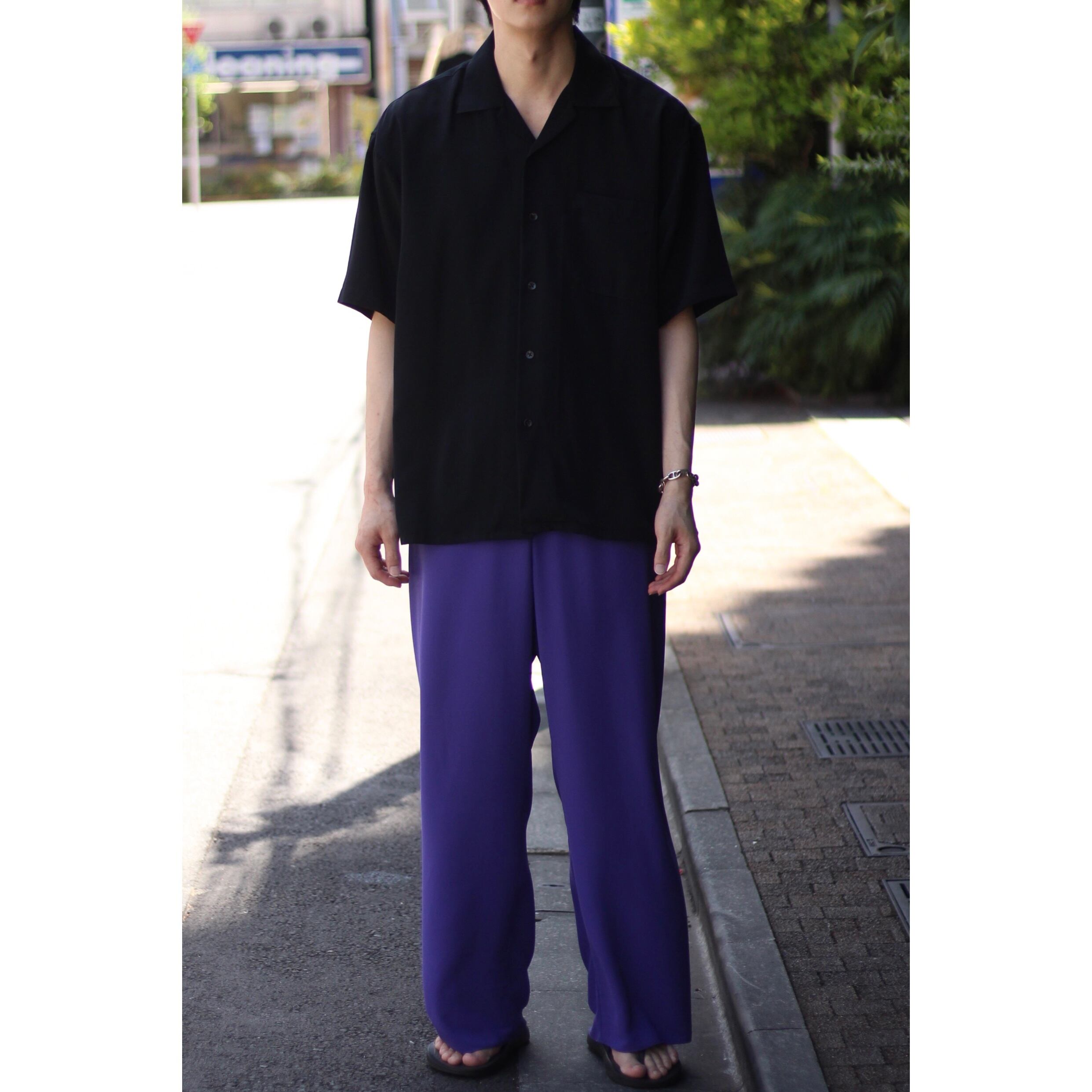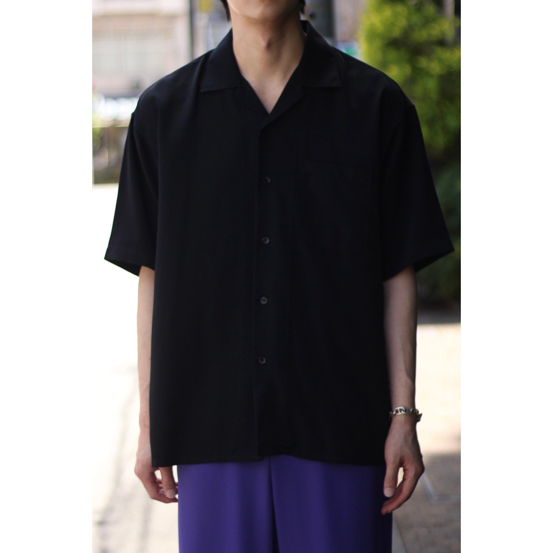 ブラックカラーに清涼感溢れるオープンカラー仕様。とろみポリ100%でドレープ感からラグジュアリーな雰囲気。シワにもなりづらく家で洗濯できるイージーケアで暑い夏にも気兼ねなく着用可能☺︎