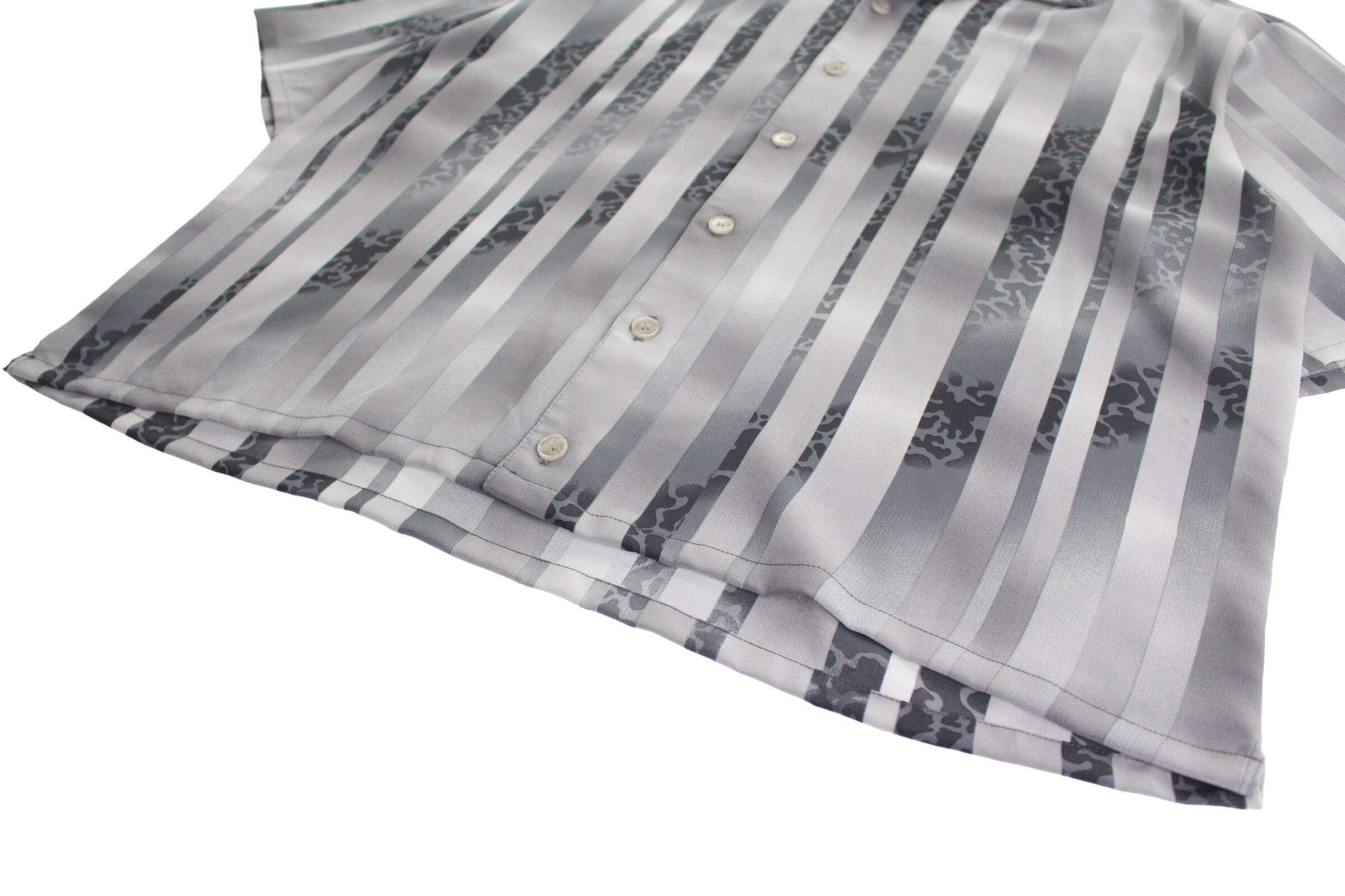 【COU】1990s vintage mench s/s stripe×leopard pattern design shirt -4575-