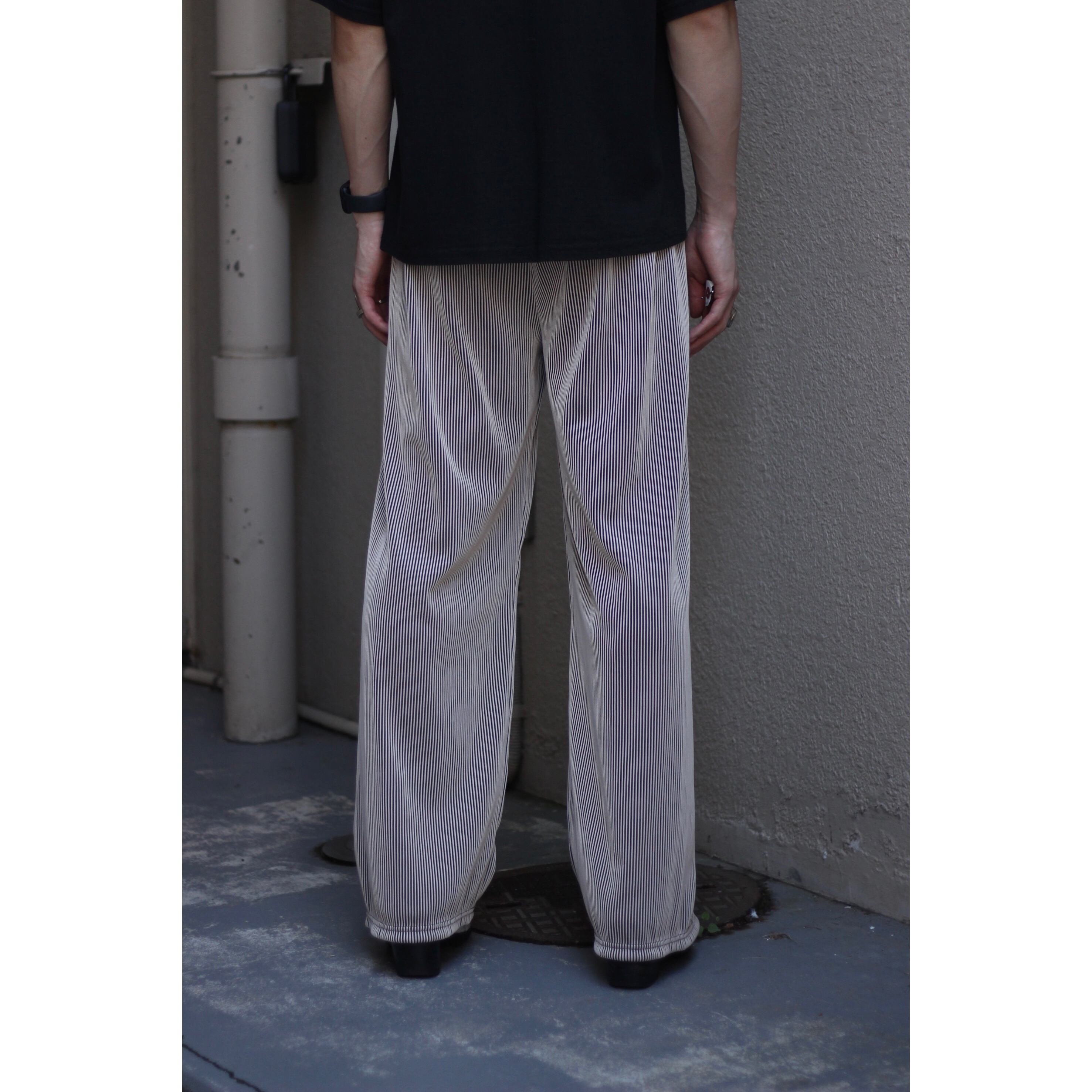 プリーツパンツと言えば立体感のある綺麗なファブリックが魅力。よく見ると凹凸でオフホワイト、ブラックでストライプのような柄感になっており上品な雰囲気がとても良いです☺︎