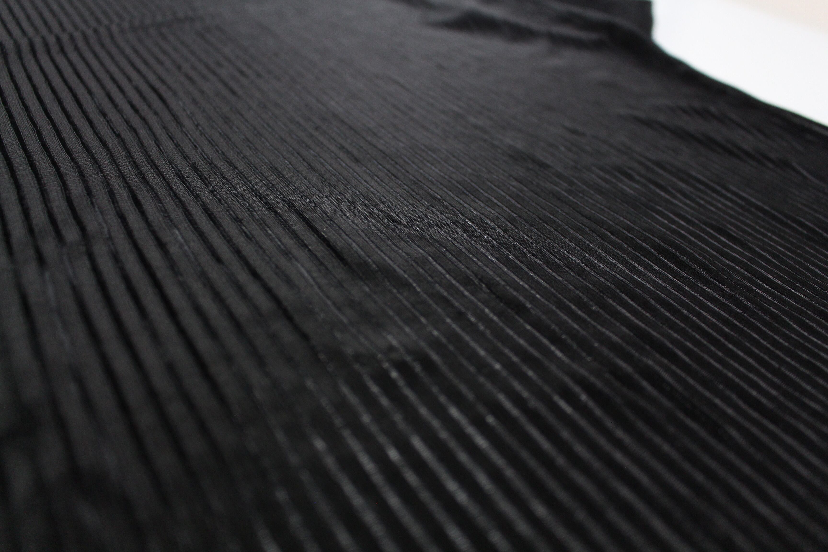 ブラックカラーでポリエステルシースルーデザインのTシャツ。