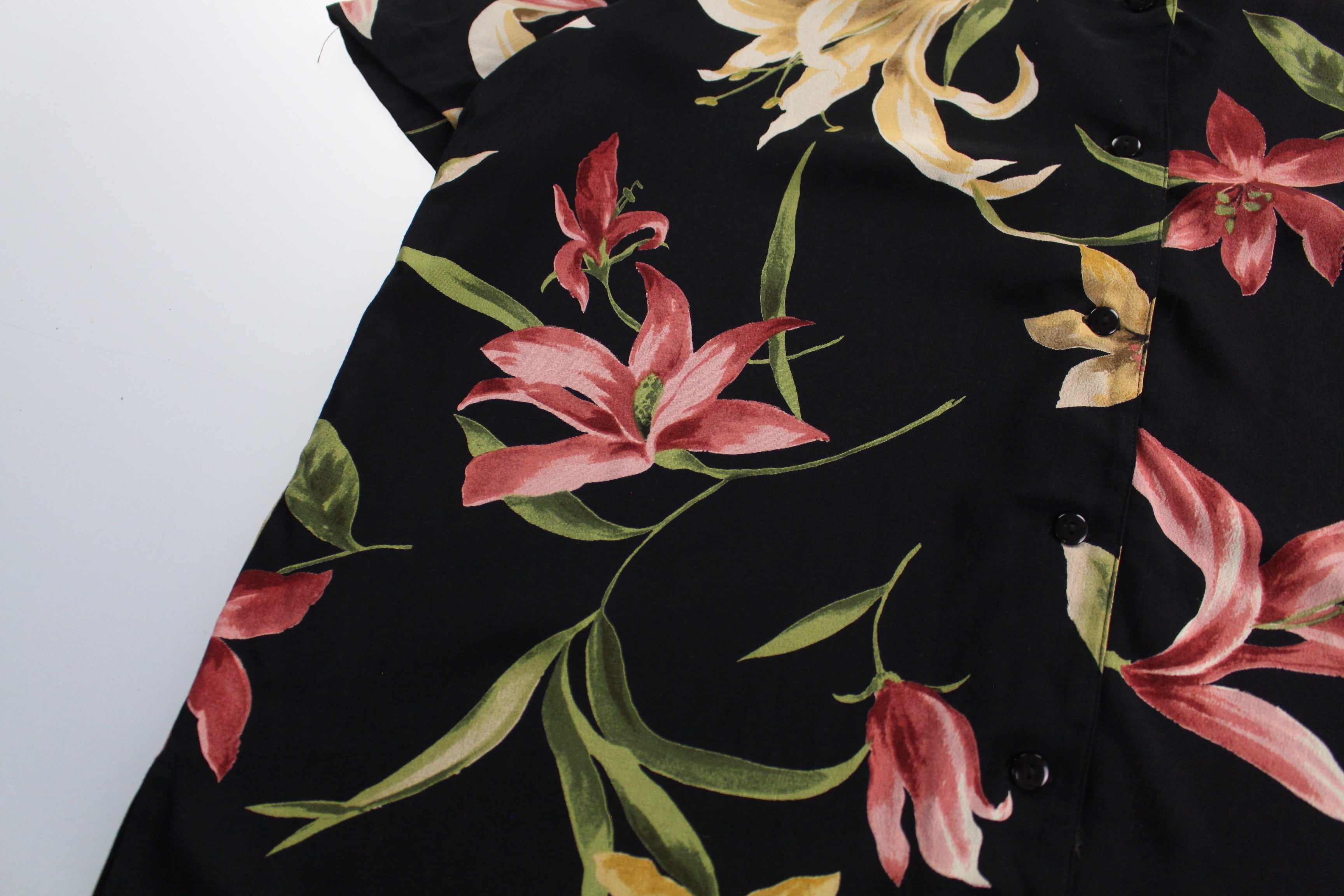 【OTSU】1990's botanical pattern rayon open collar shirt -10460-