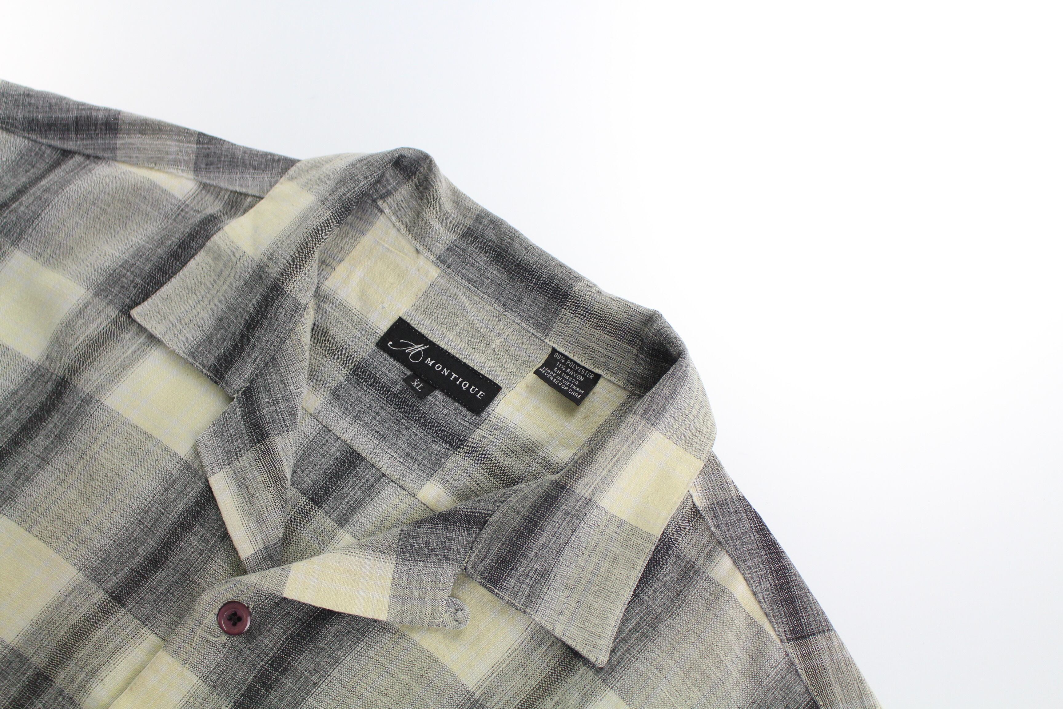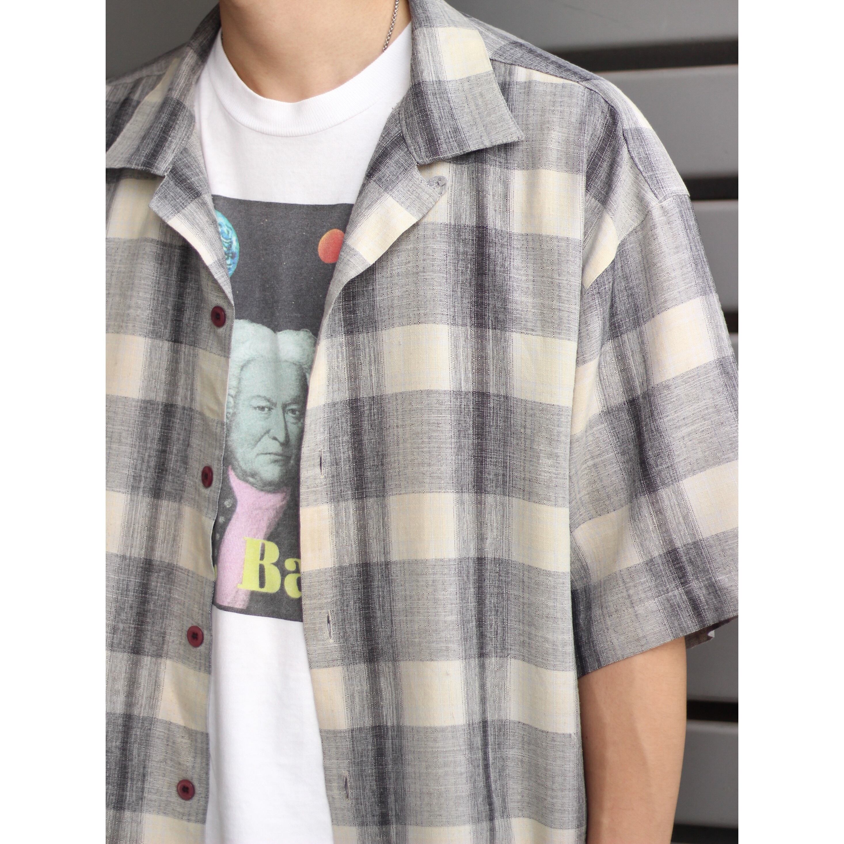 【CUBA】1990s S/S oversized rayon ombre check open-collar shirt -7635-
