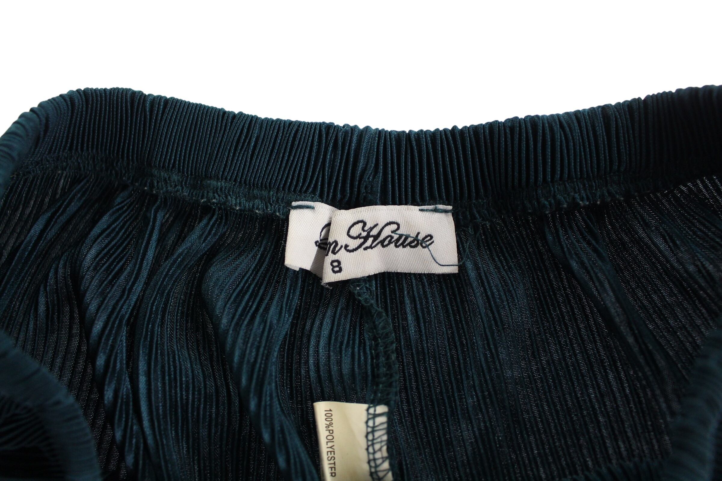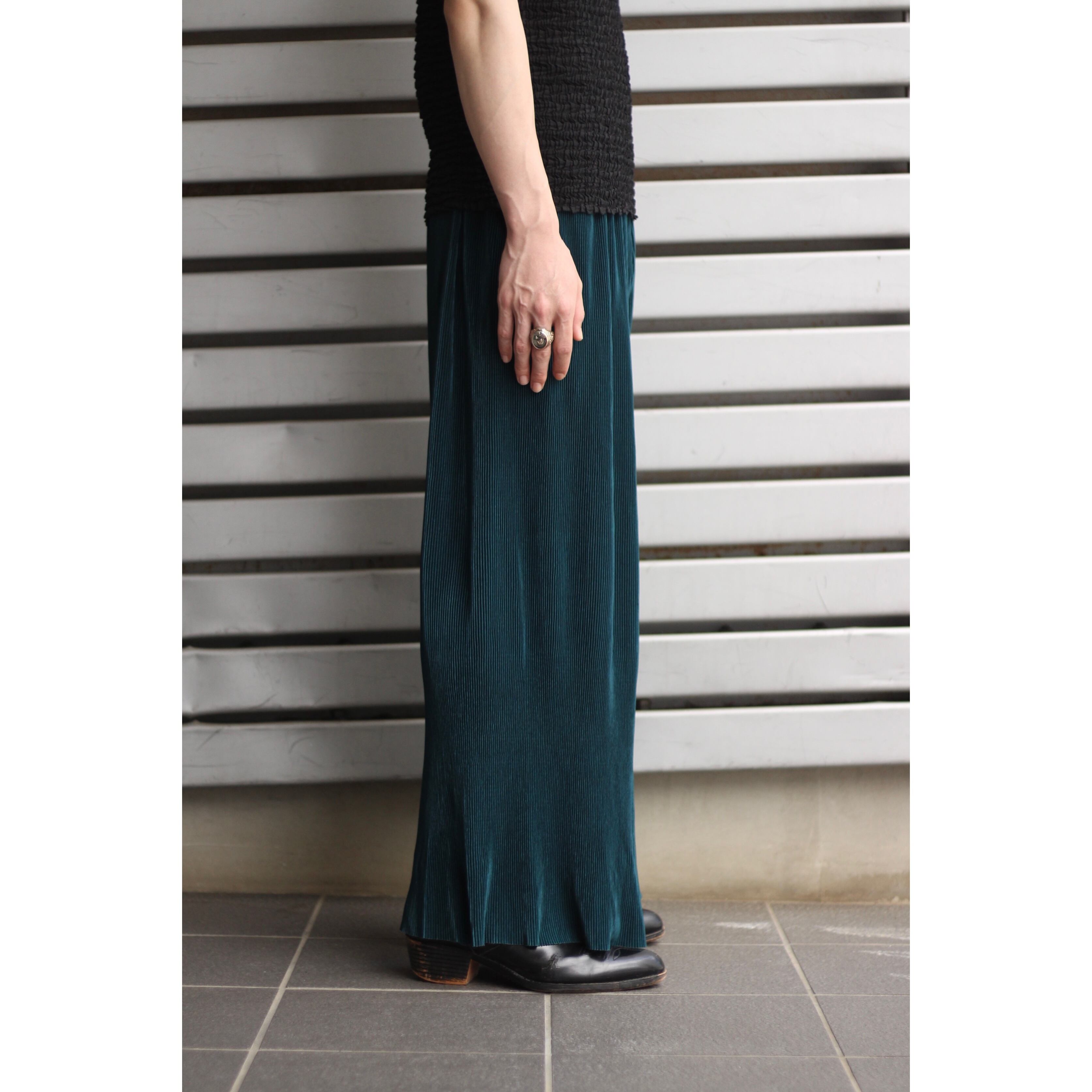 ダークグリーンカラーのアンニュイな色味。ボディ独特のツヤと動きのあるパンツ。