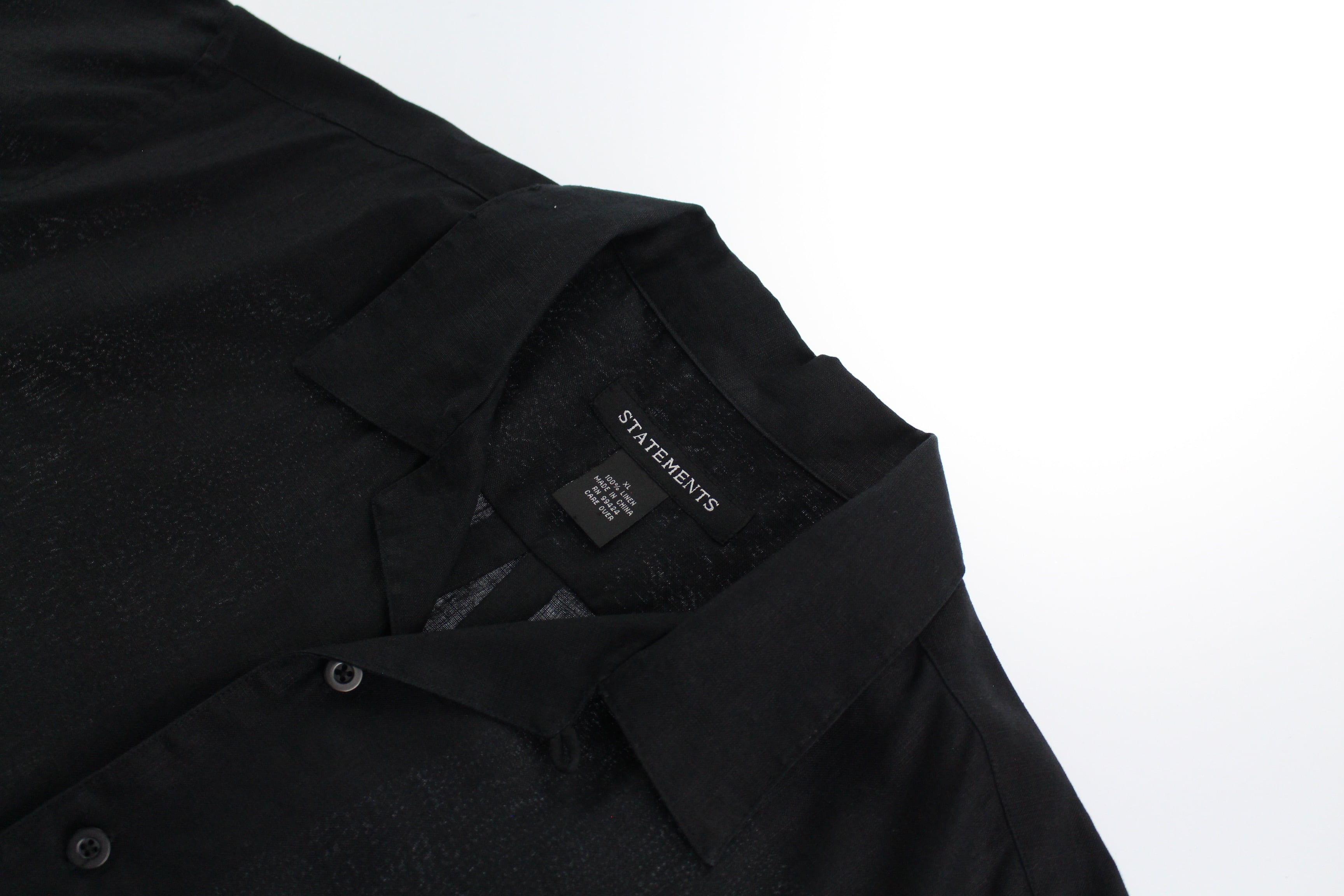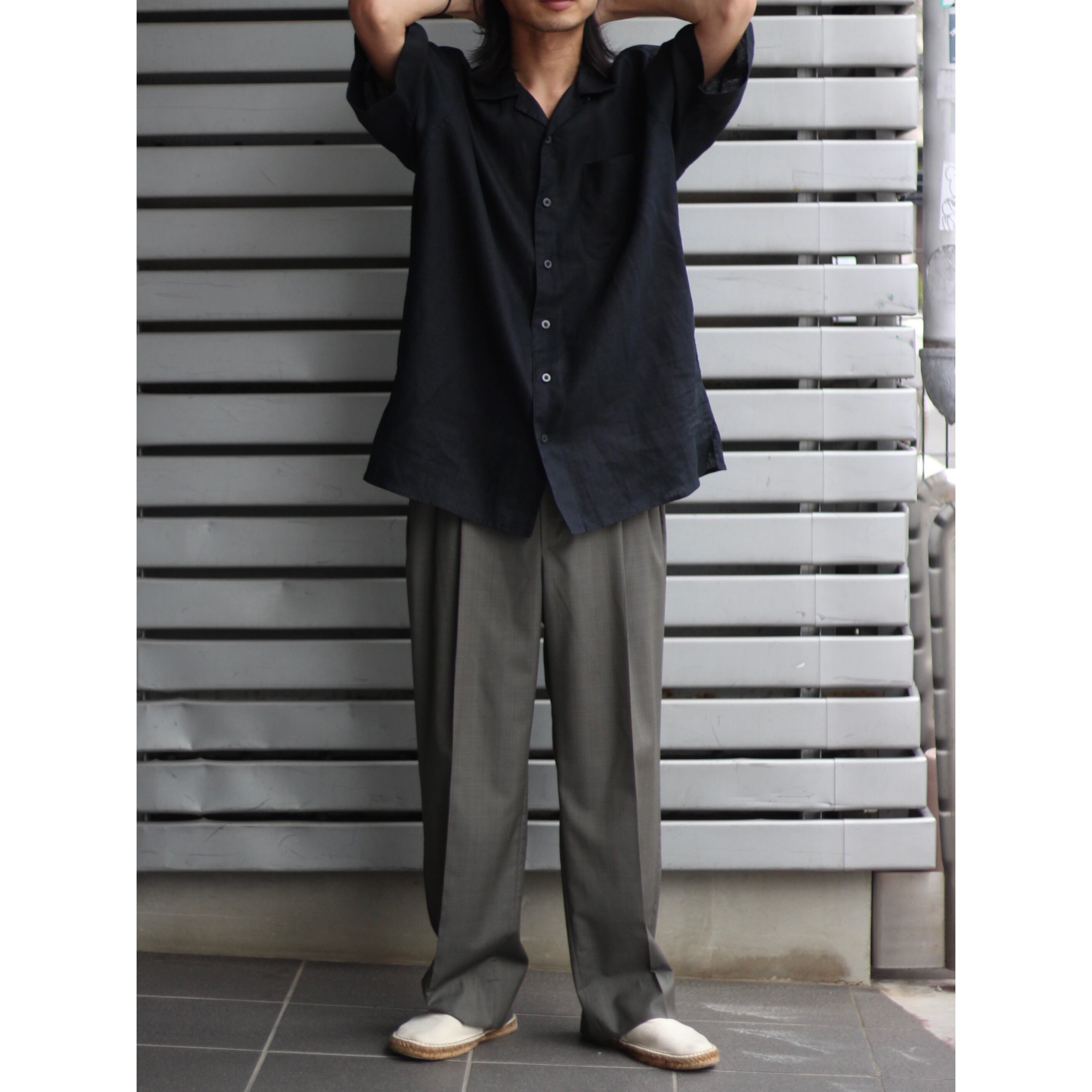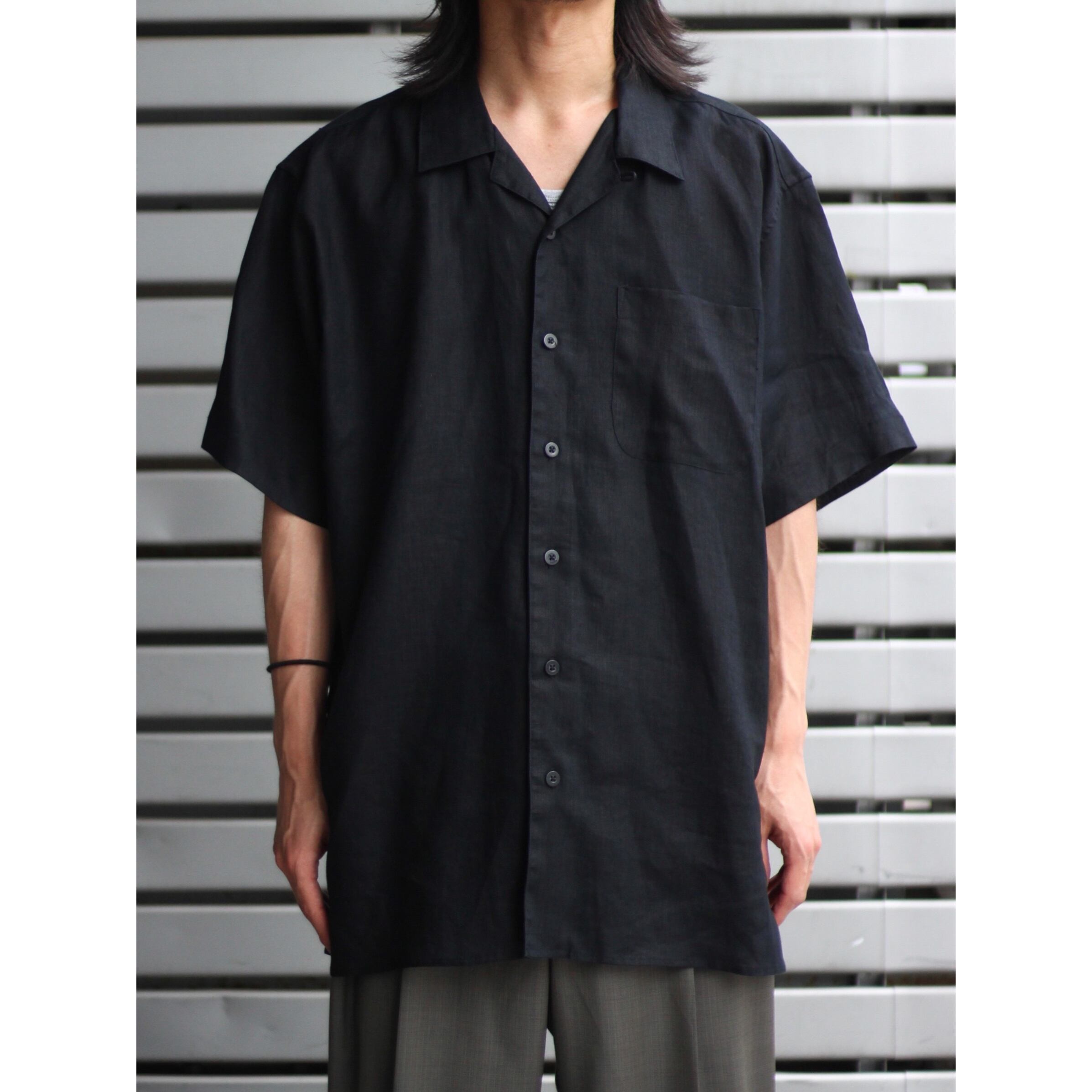 半袖オールブラック、オールリネンのオープンカラーシャツとなります