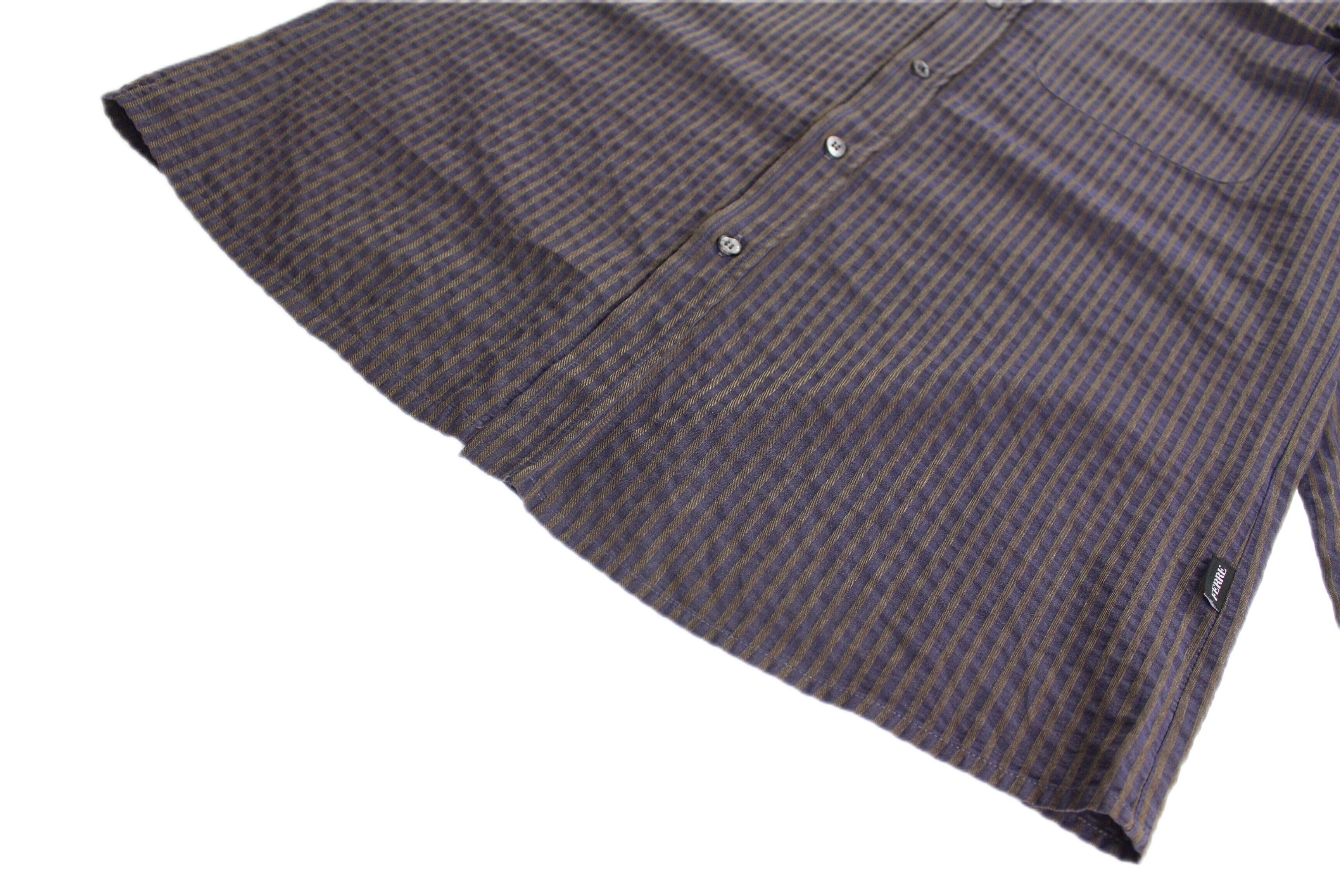 大人っぽいパープルと組み合わせられたストライプ仕様。シアサッカーのような立体的にも見え,ボタンもシェルボタンライクデザインが◎