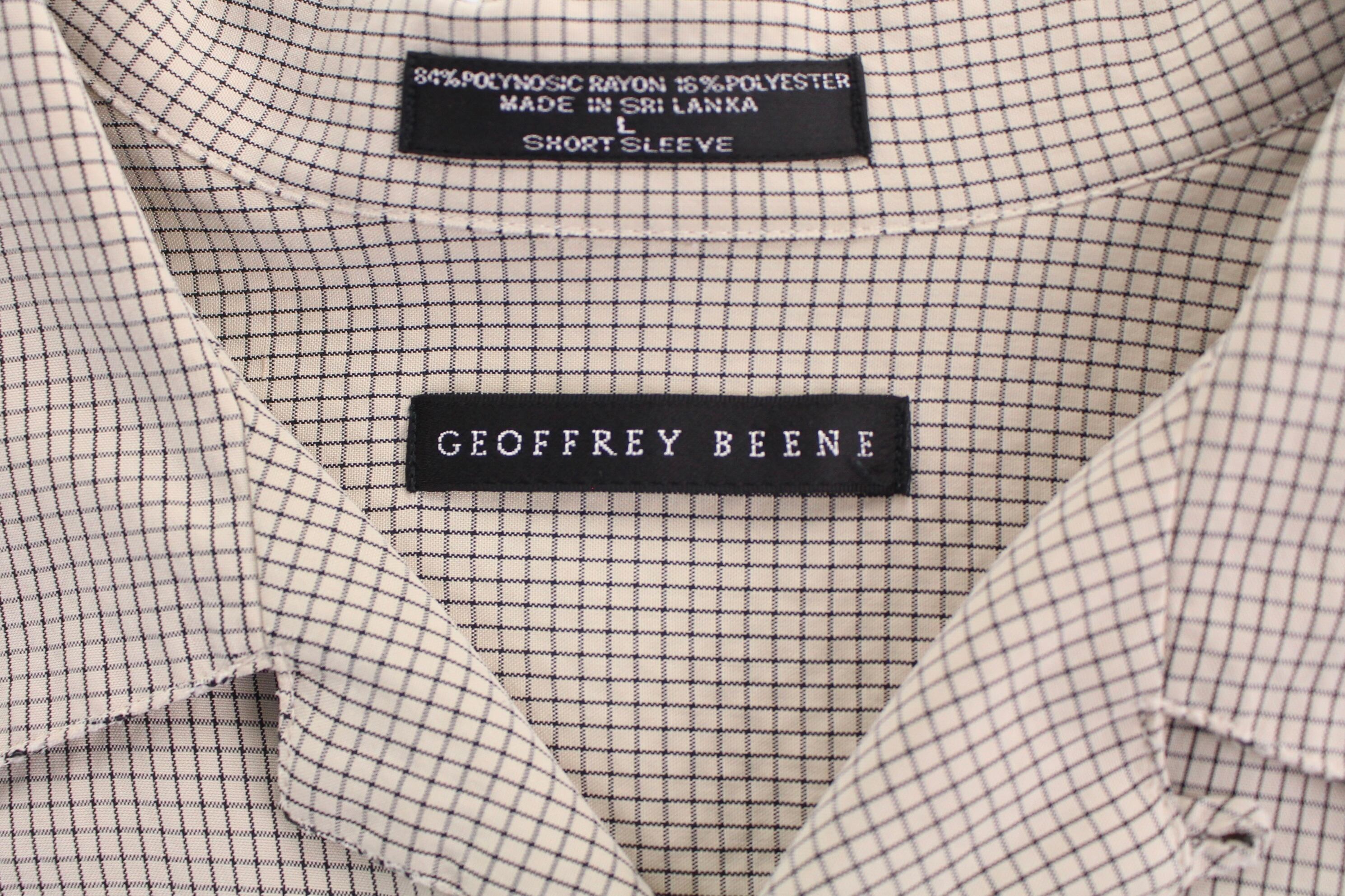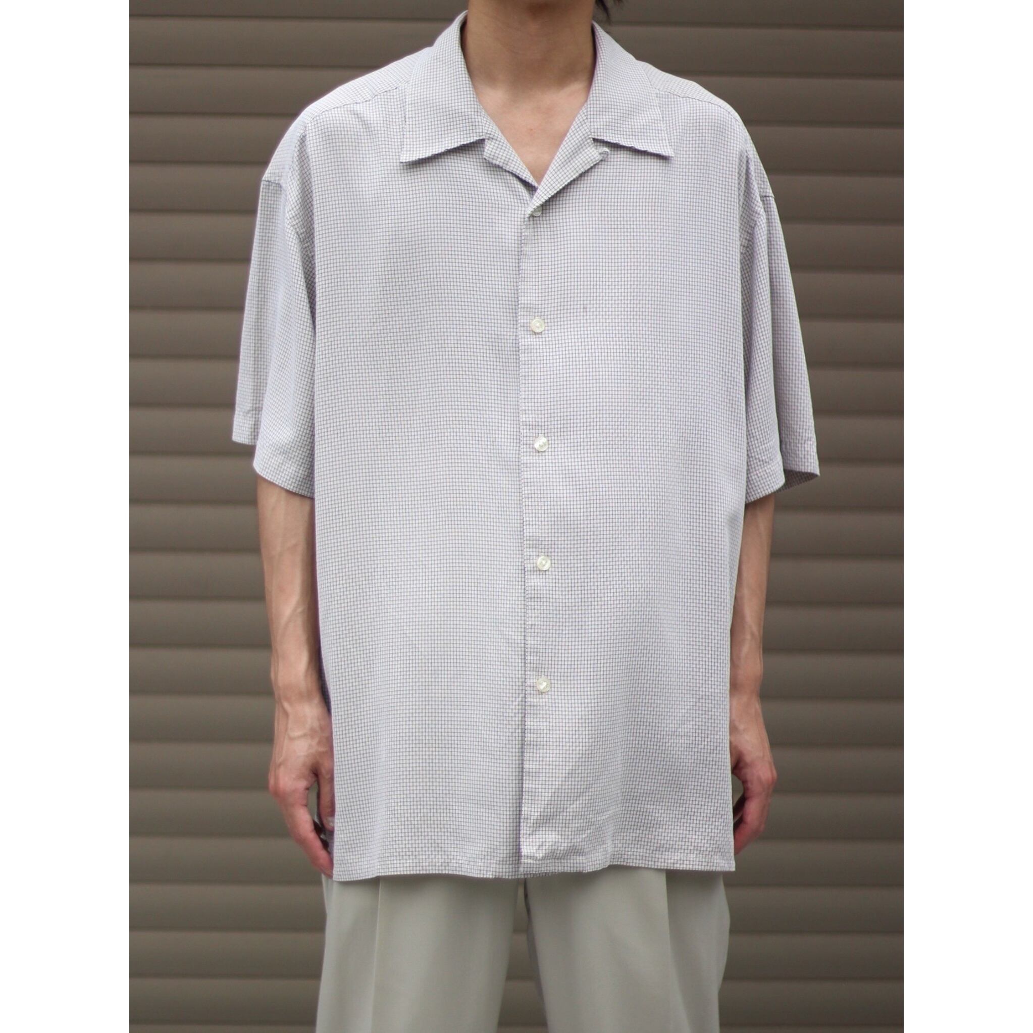 【CUBA】GEOFFREY BEENE S/S graph check pattern rayon open-collar shirt -7656-