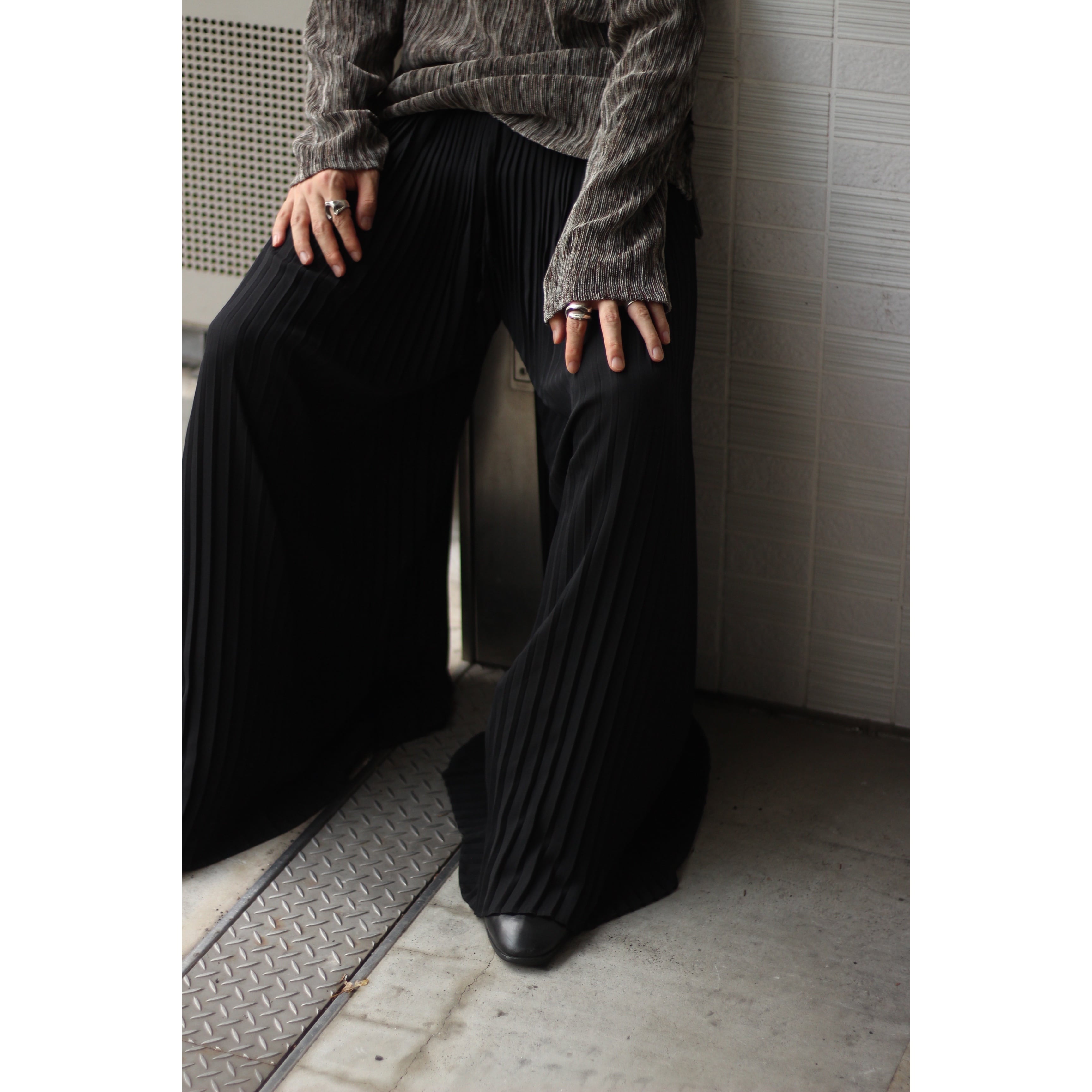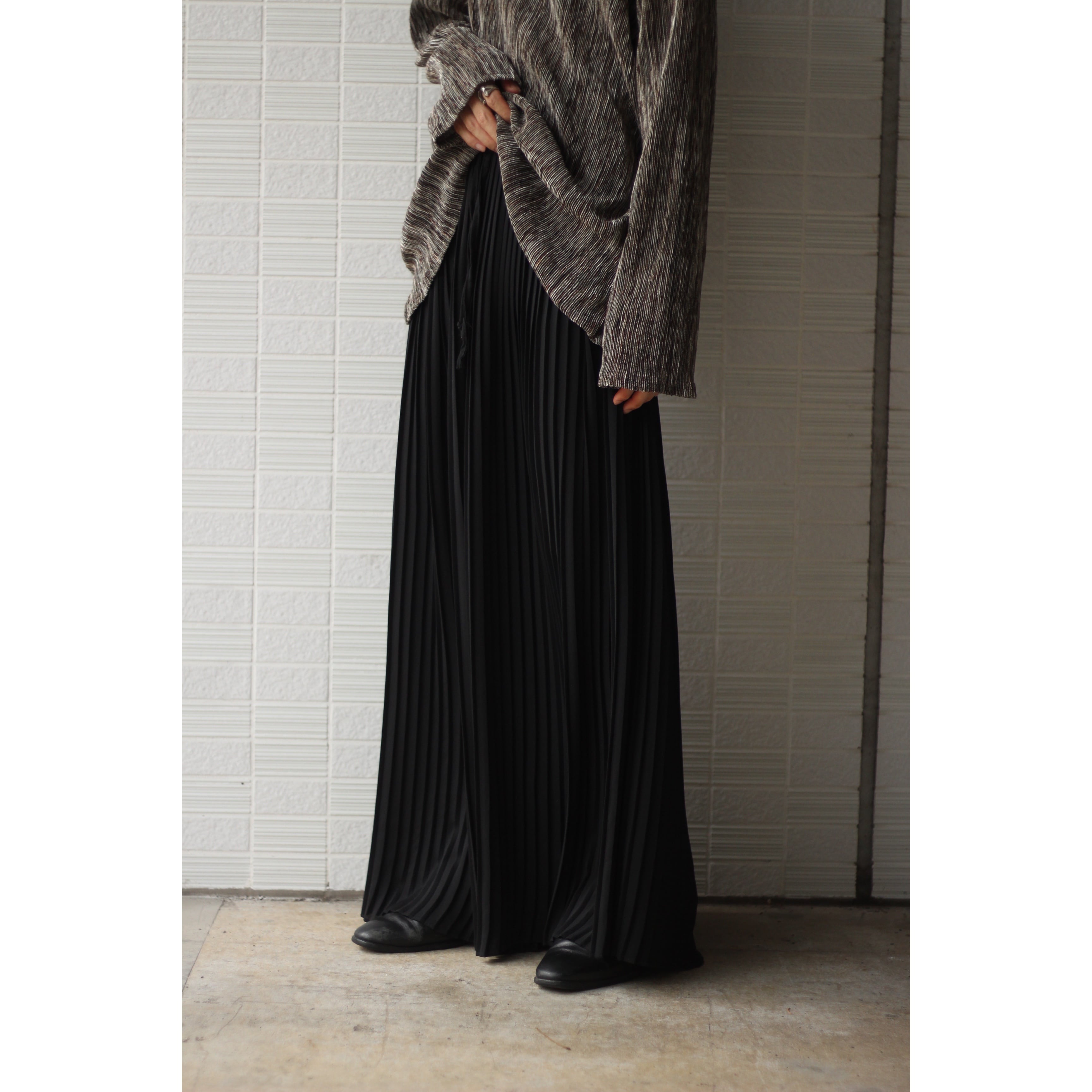 人気のブラックカラー。立体的なプリーツデザインがとても綺麗でカッコ良いパンツ。