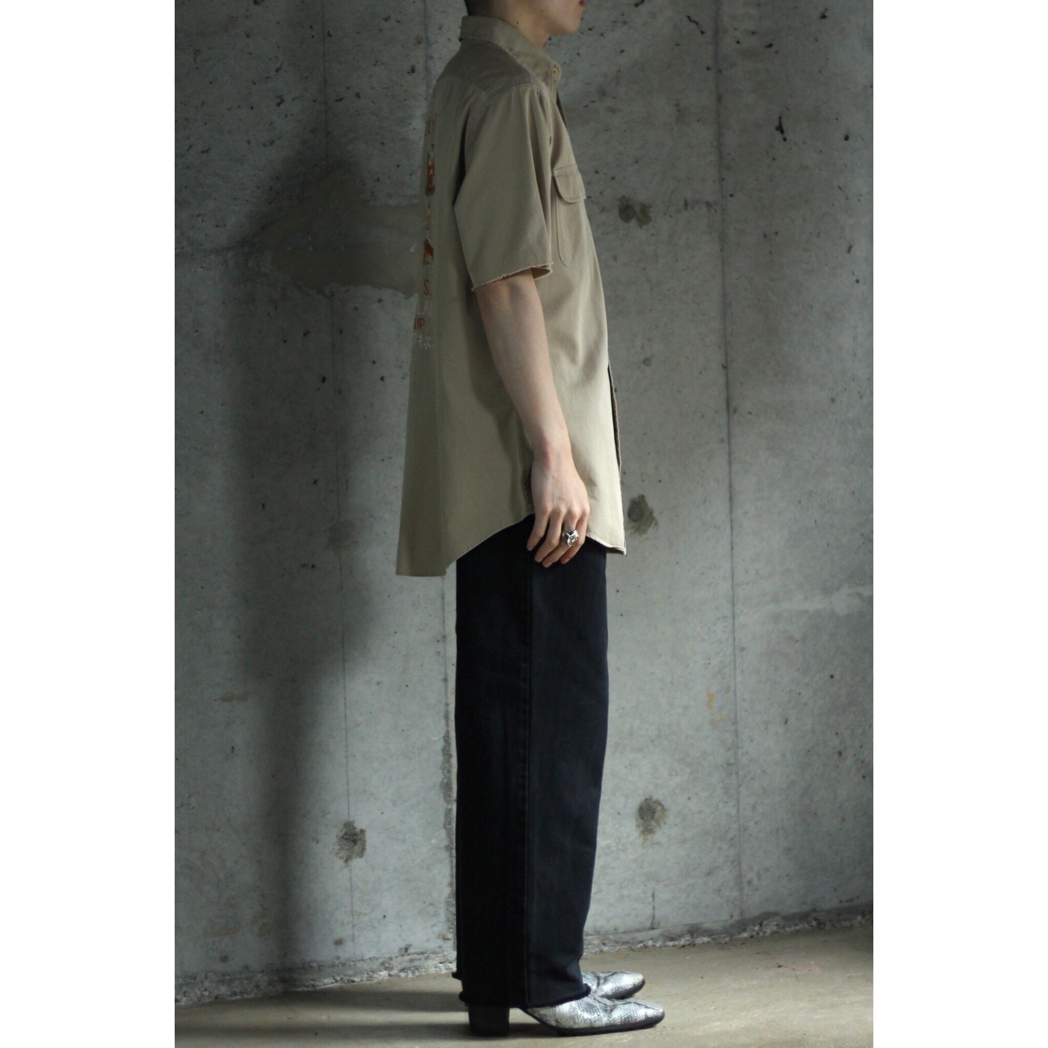 ワークシャツの形に袖はカットオフのビンテージ加工。特筆すべきはバックの刺繍。ドラゴンと虎を組み合わせたような色鮮やかな刺繍。相当クオリティが高いです、、