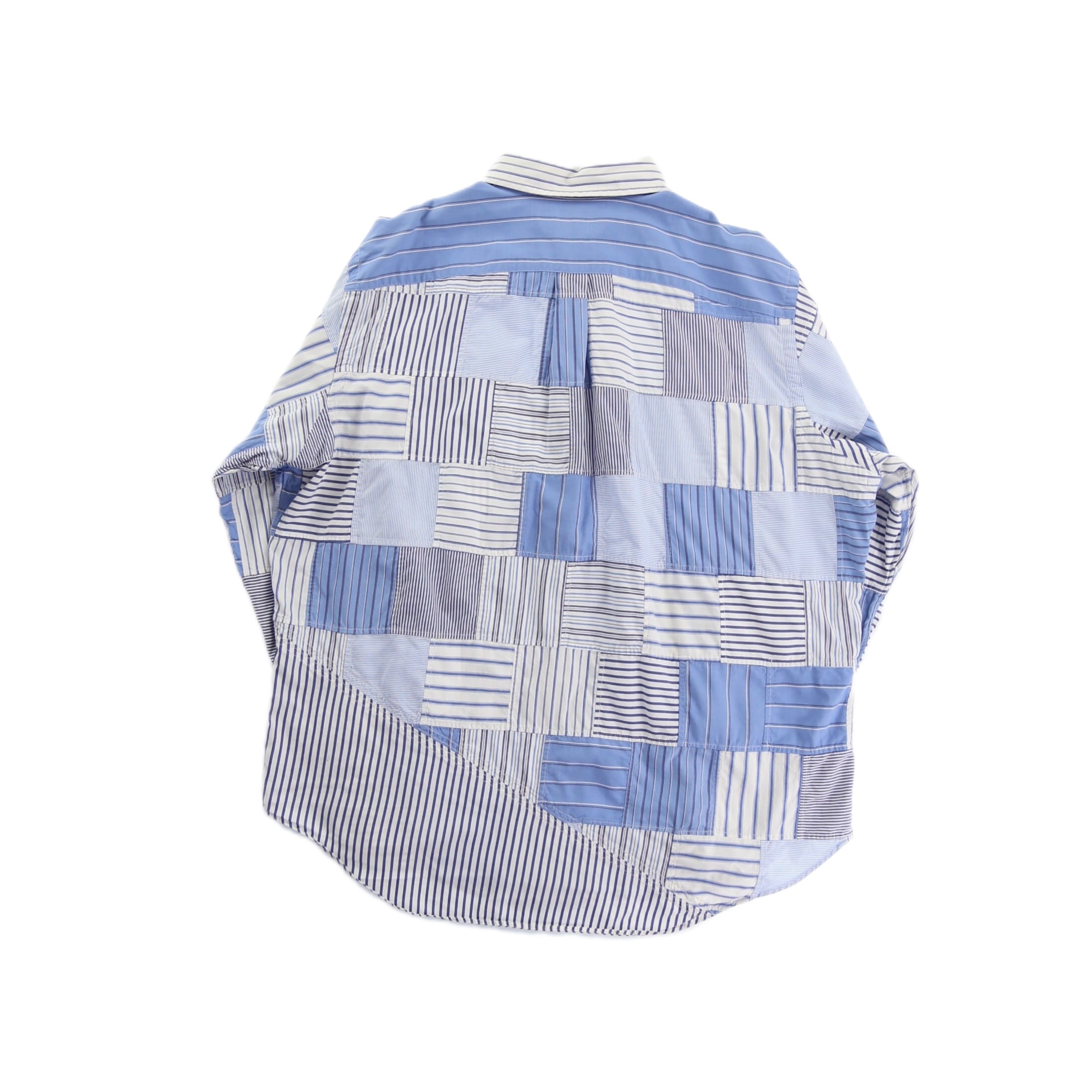 当店でも馴染みの深いラルフのストライプシャツですが,こちらは素晴らしい。ありとあらゆるブルー×ホワイトの生地をつなぎ合わせたパッチワーク仕様。