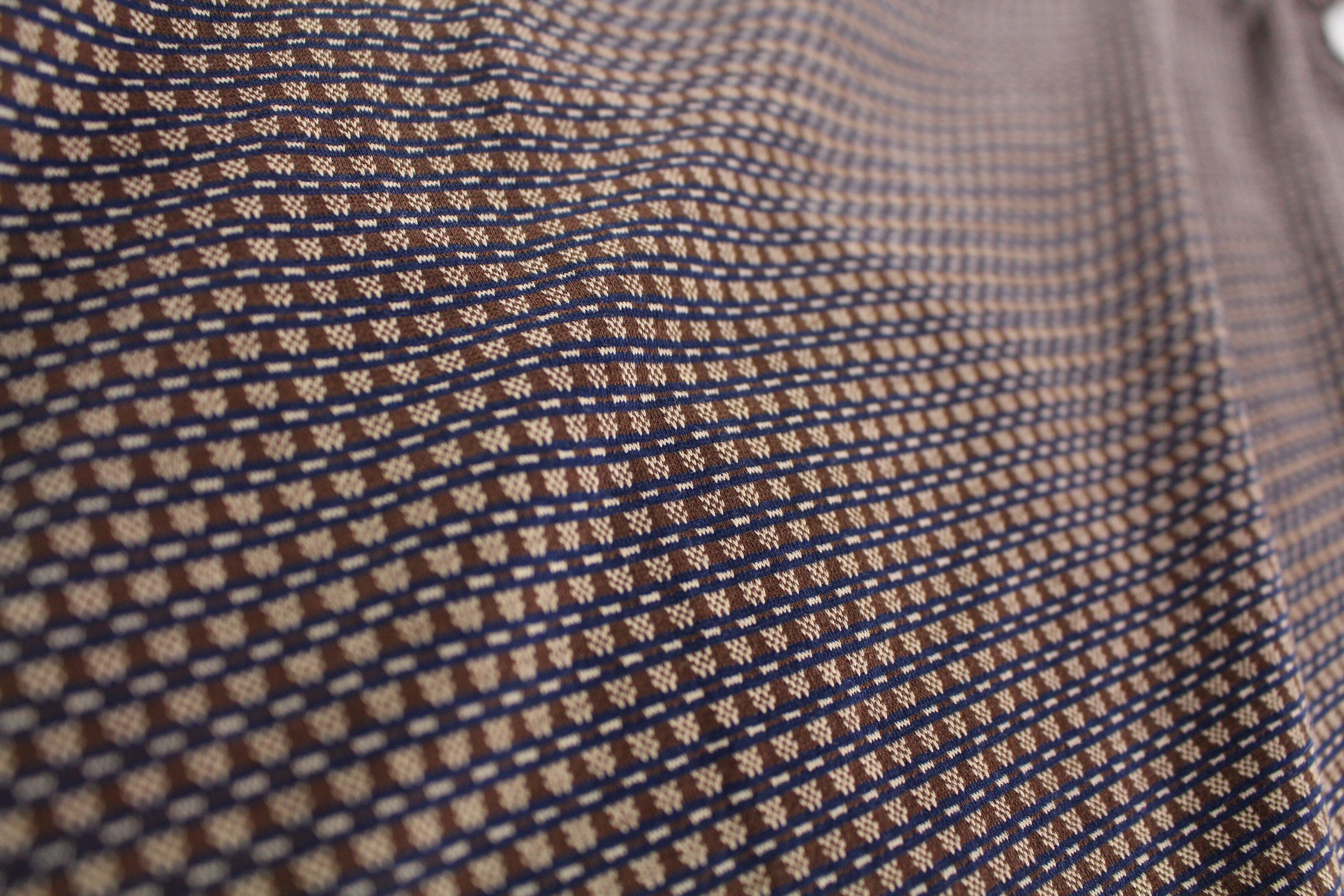 ブラウンベースにヴィンテージライクな小紋柄が全面にプリントされたデザイン。