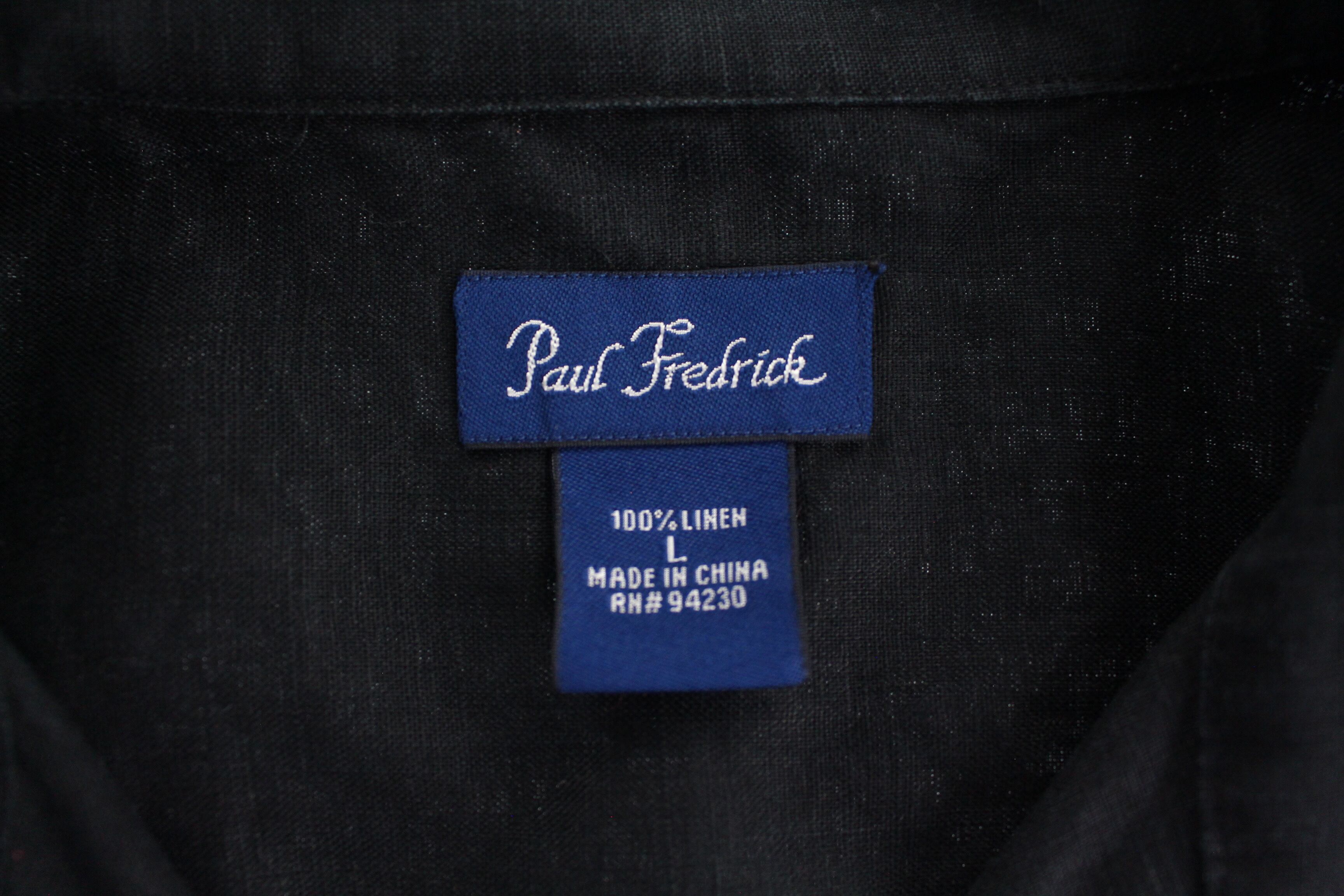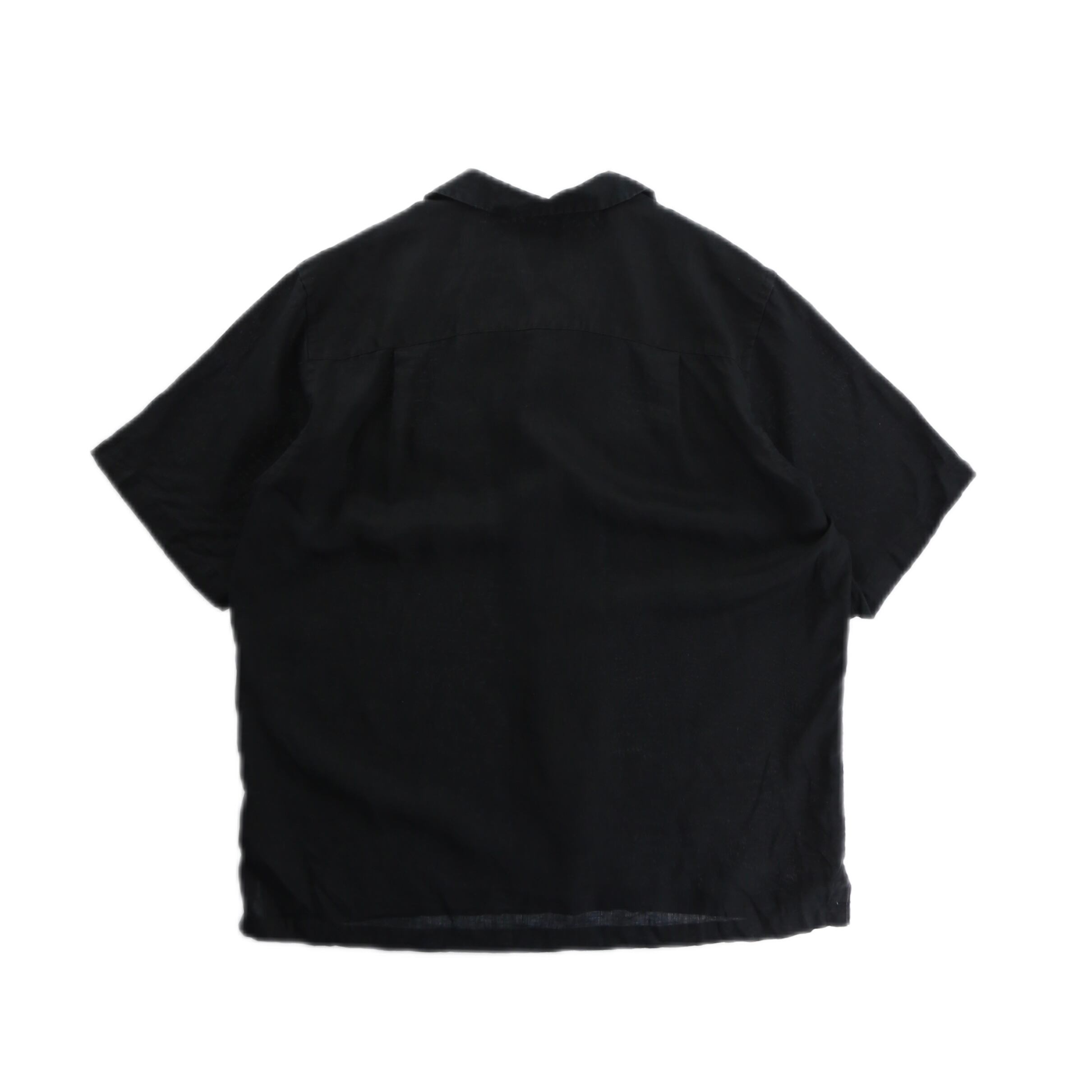 【CUBA】1990s vintage all black 100% linen open-collar shirt -7708-