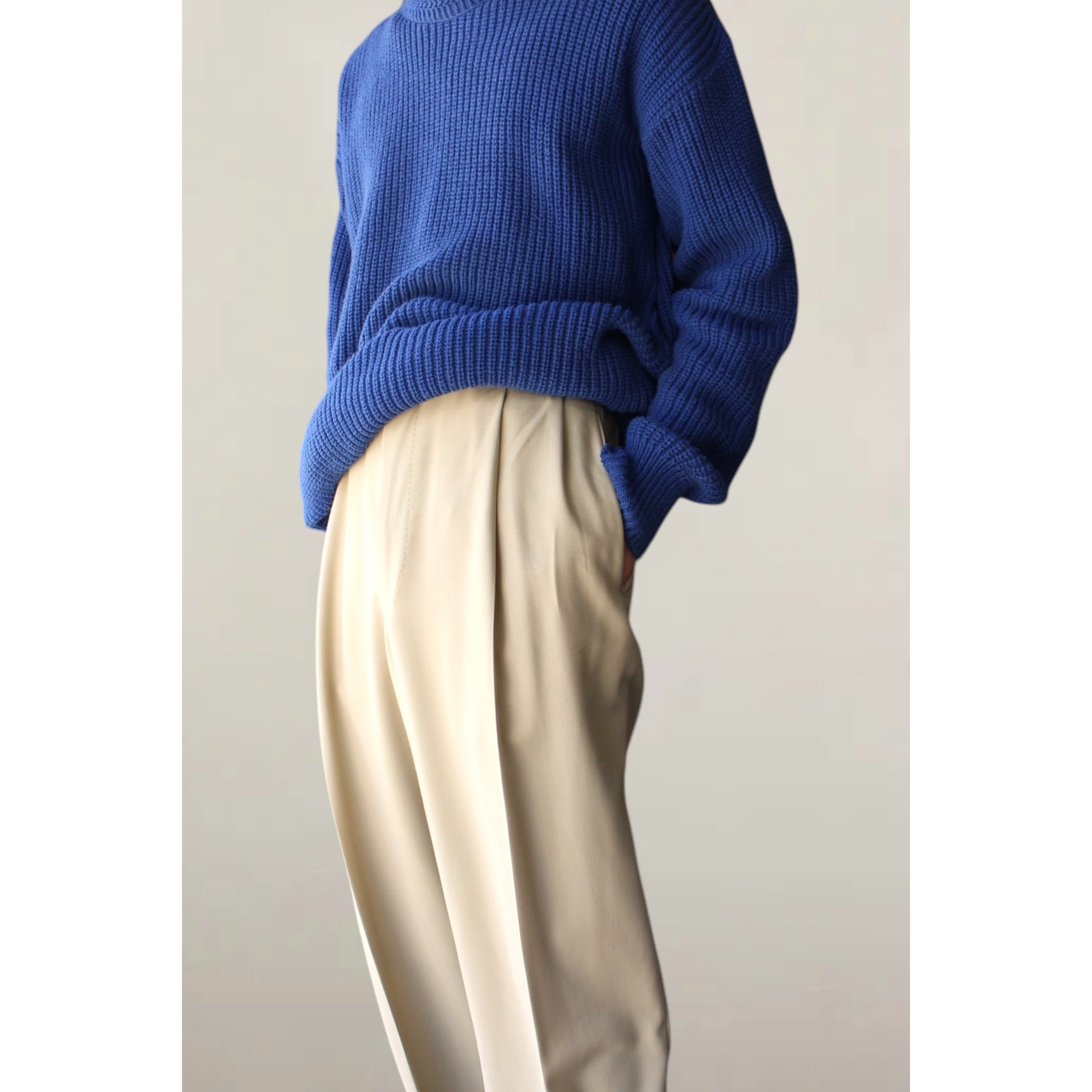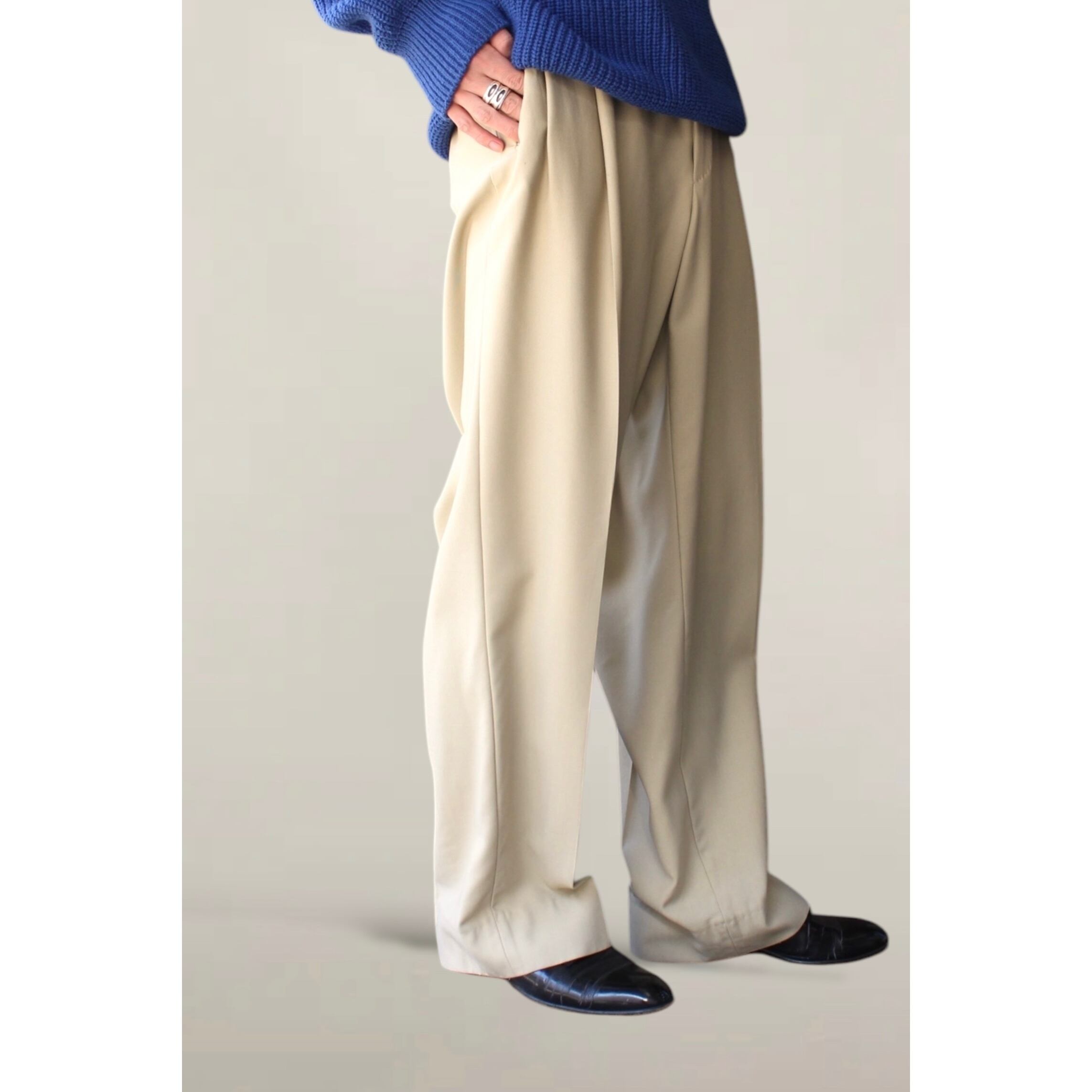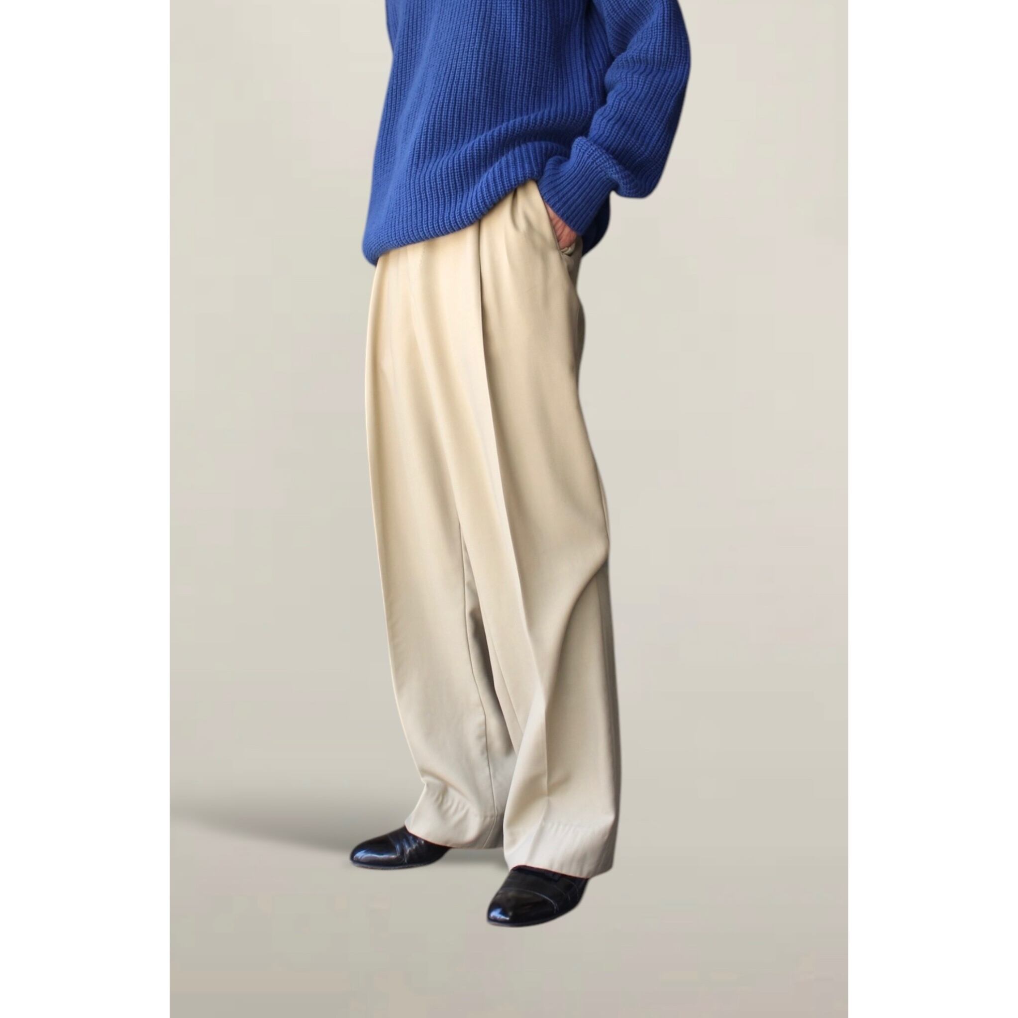 とても滑らかなウール生地。シルクが入っているのかと疑うほど薄手で兎に角生地が良い一本。とろとろと動きの出るパンツ。
