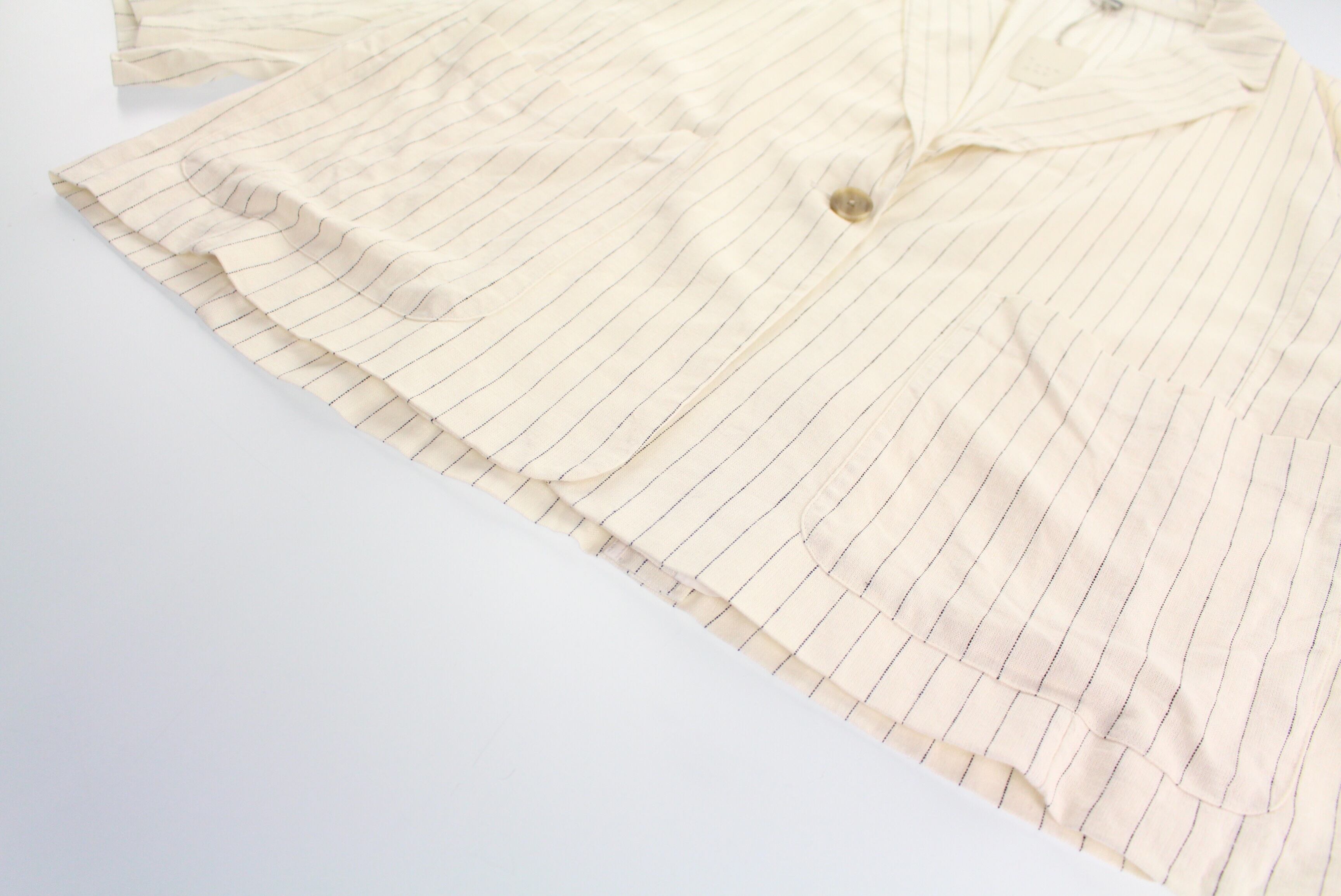基本的に無地が多めのイージーテーラードですがこちらはオフホワイトにブラックのステッチストライプデザイン。とても珍しく他と差別化も図れる1着☺︎