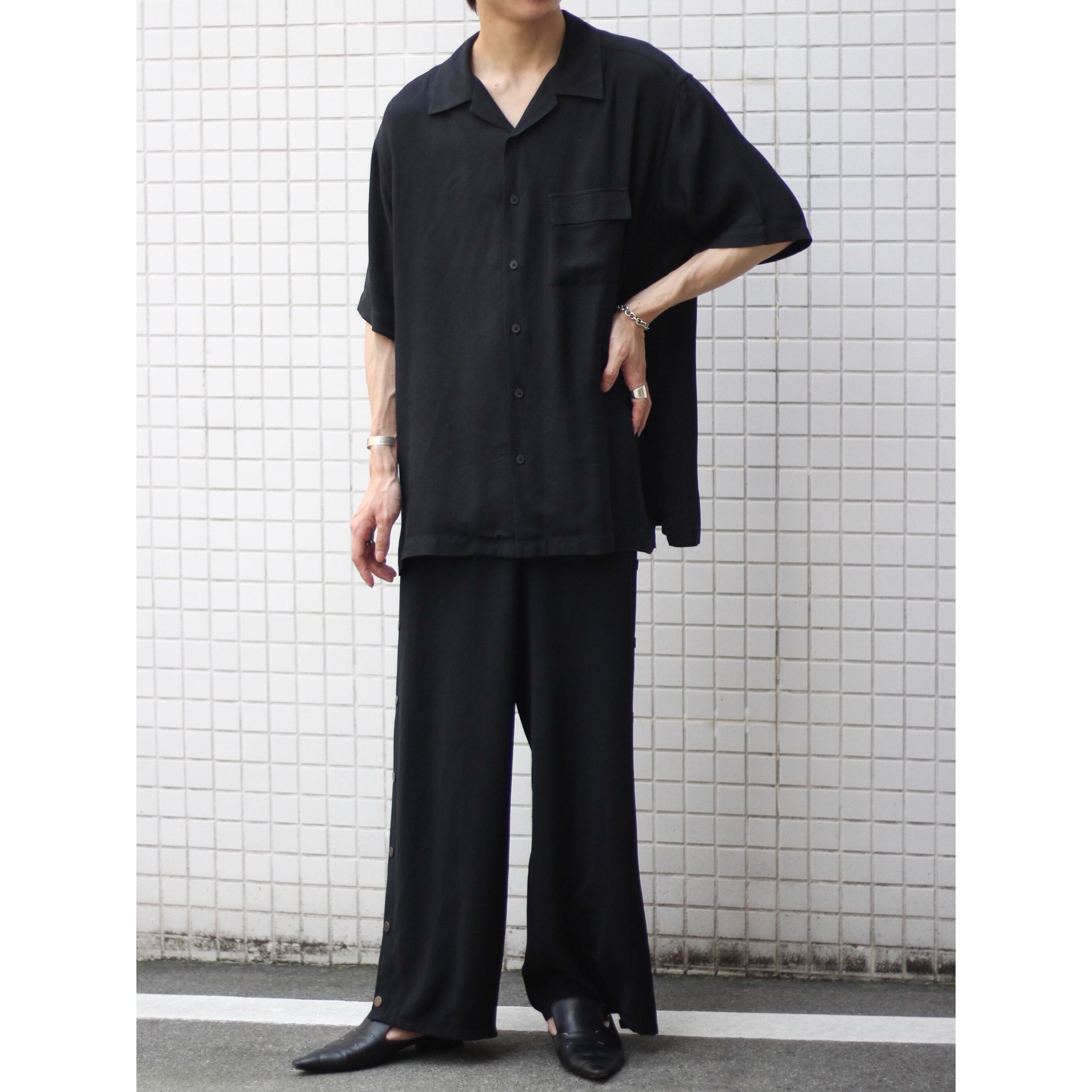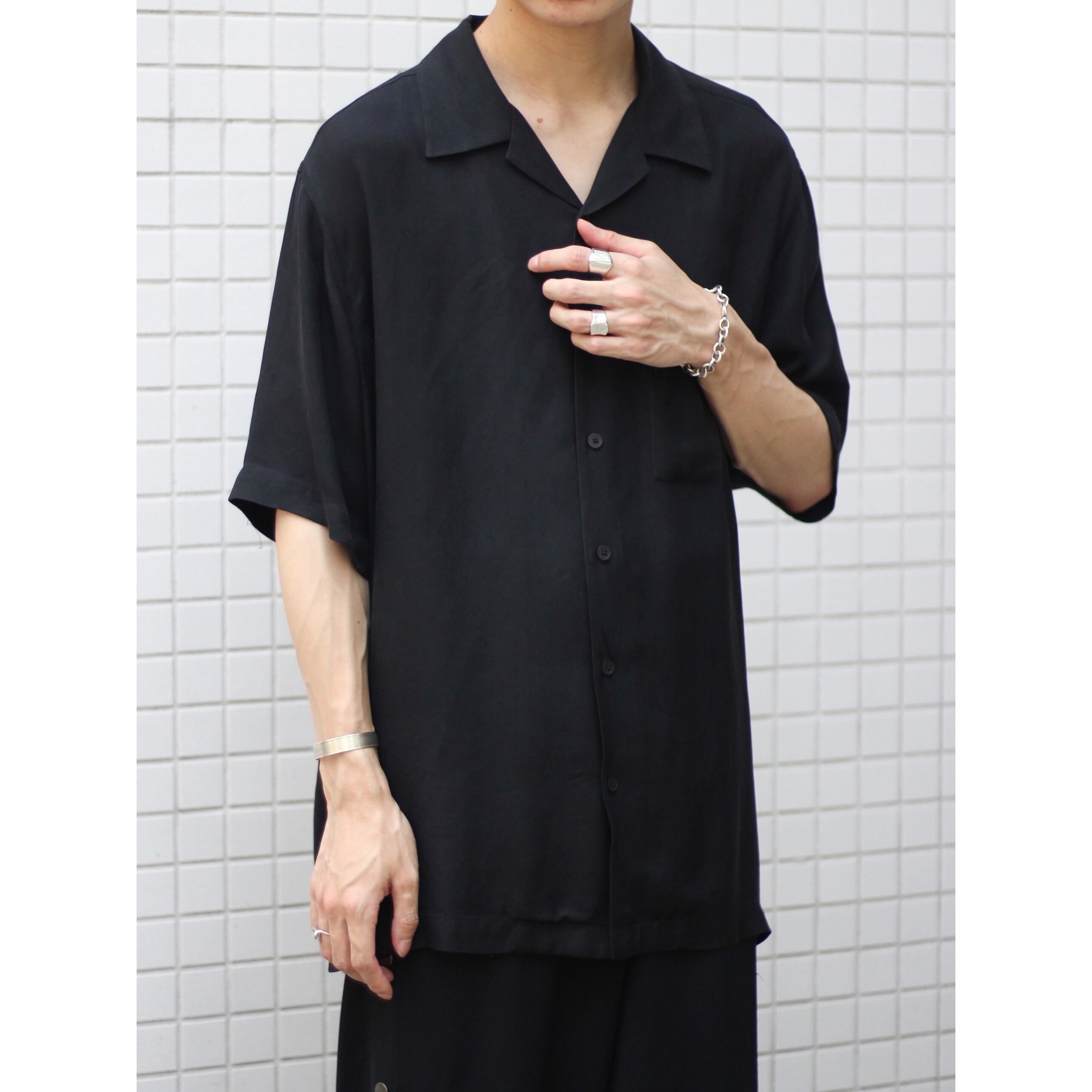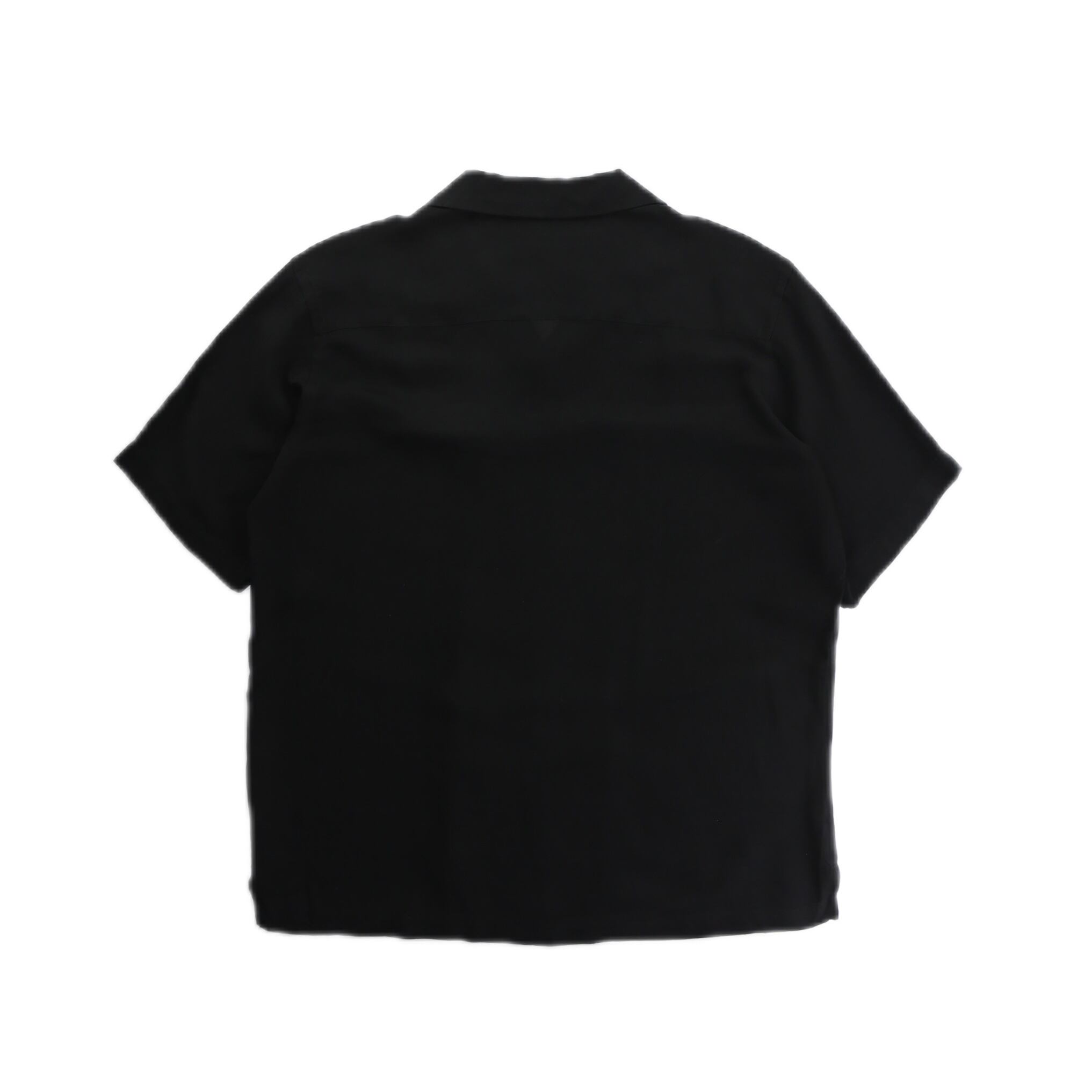 ブラック無地、100%ヘビーシルクのオープンカラーシャツ。