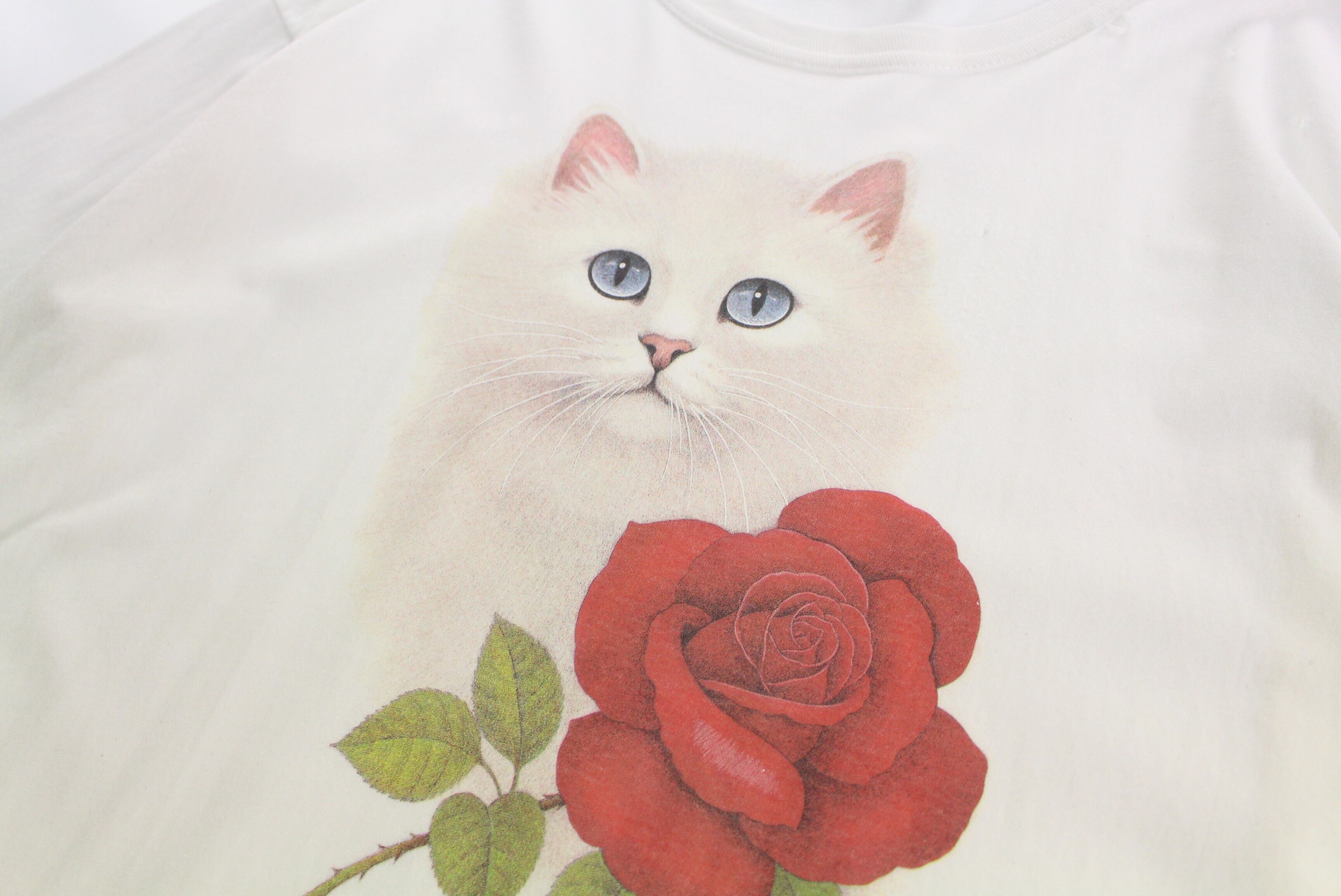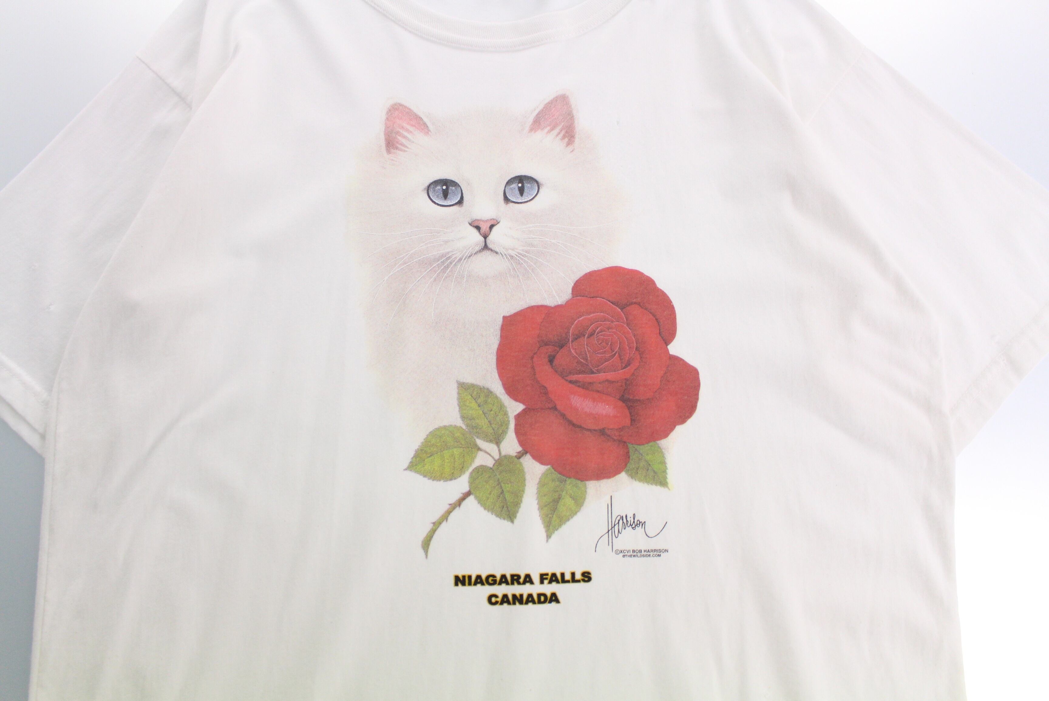 柔らかなタッチでネコなどの動物を描くアーティスト "ボブハリソン"のカナダ製ヴィンテージネコプリントTシャツ。しっかりコピーライト入りで◎