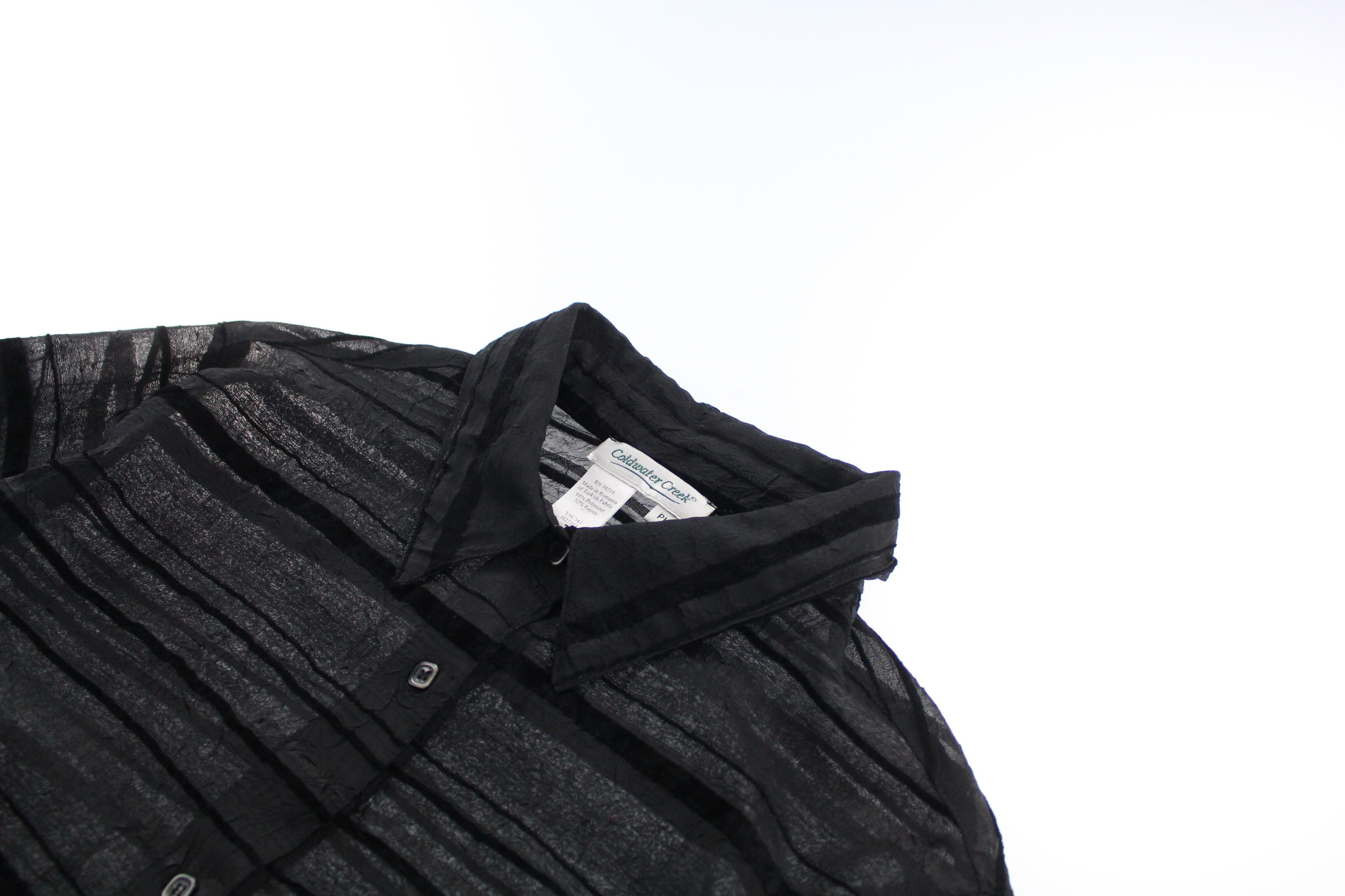 【CUBA】1990s vintage black sheer design shirt -7762-