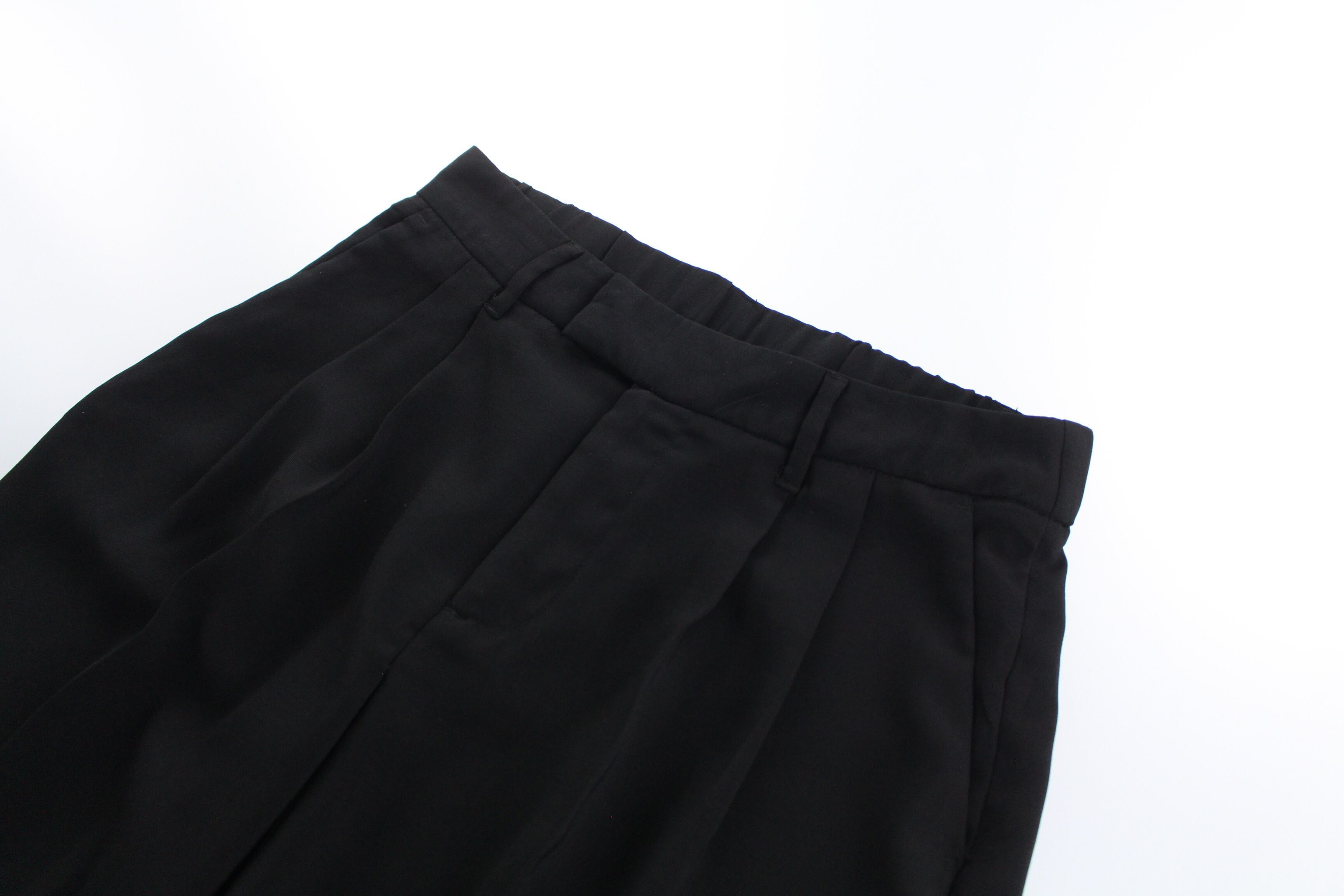 ウエスト部分はスッキリとした2タック仕様に背面ウエストのみゴム入りで伸びる快適な仕様。