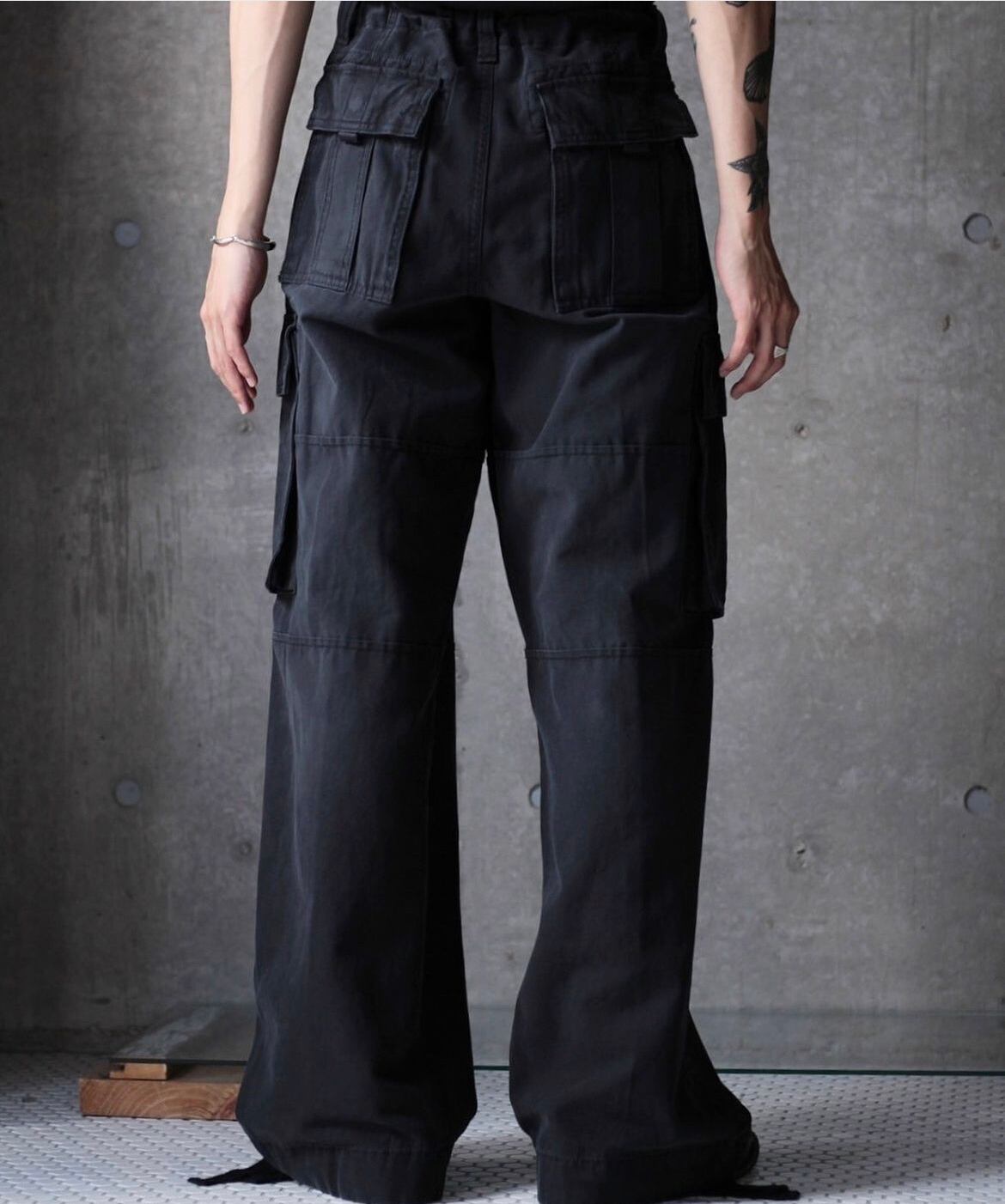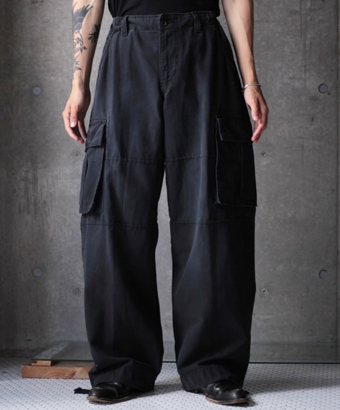 【COUOTSU】wide silhouette black cargo pants-1066-
