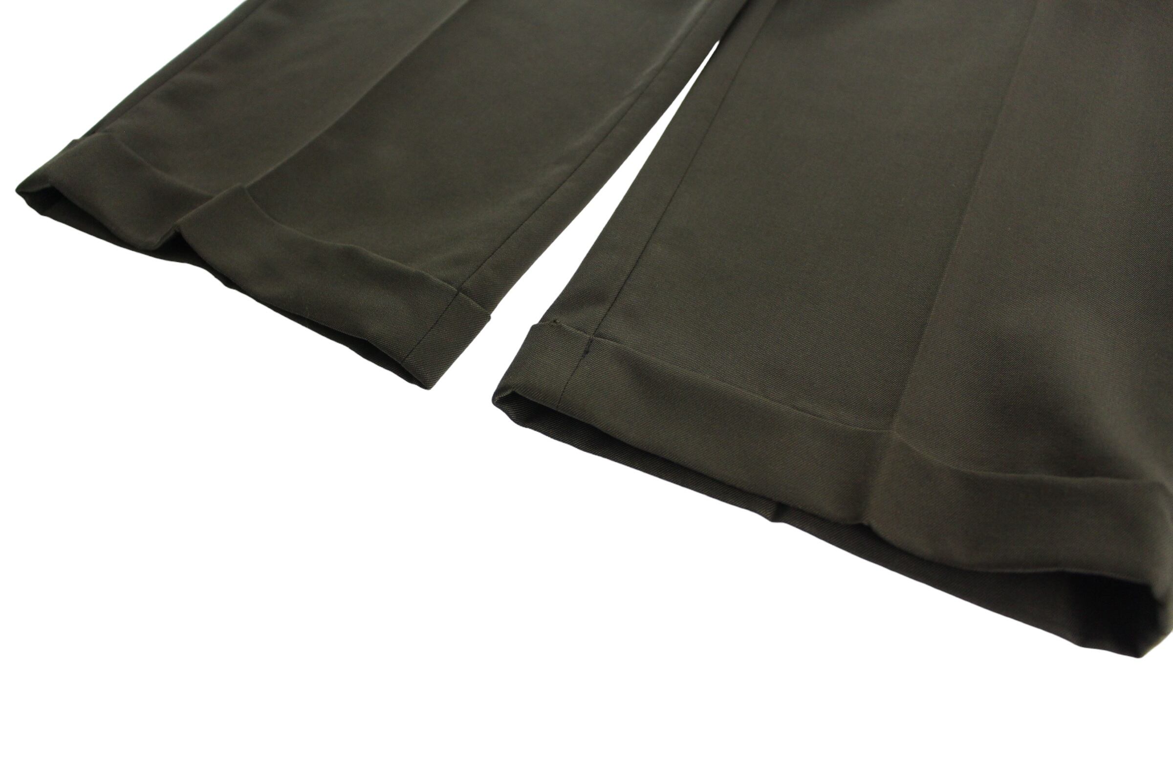 ウールといえど、軽やかで通年快適に着用して頂けます。ウール特有のハリがありながらもとろみのあるドレープ、揺れ感が心地の良いファブリックを楽しんで頂ける一本です。オリーブカラーも相待ってよりラグジュアリーな佇まいです。