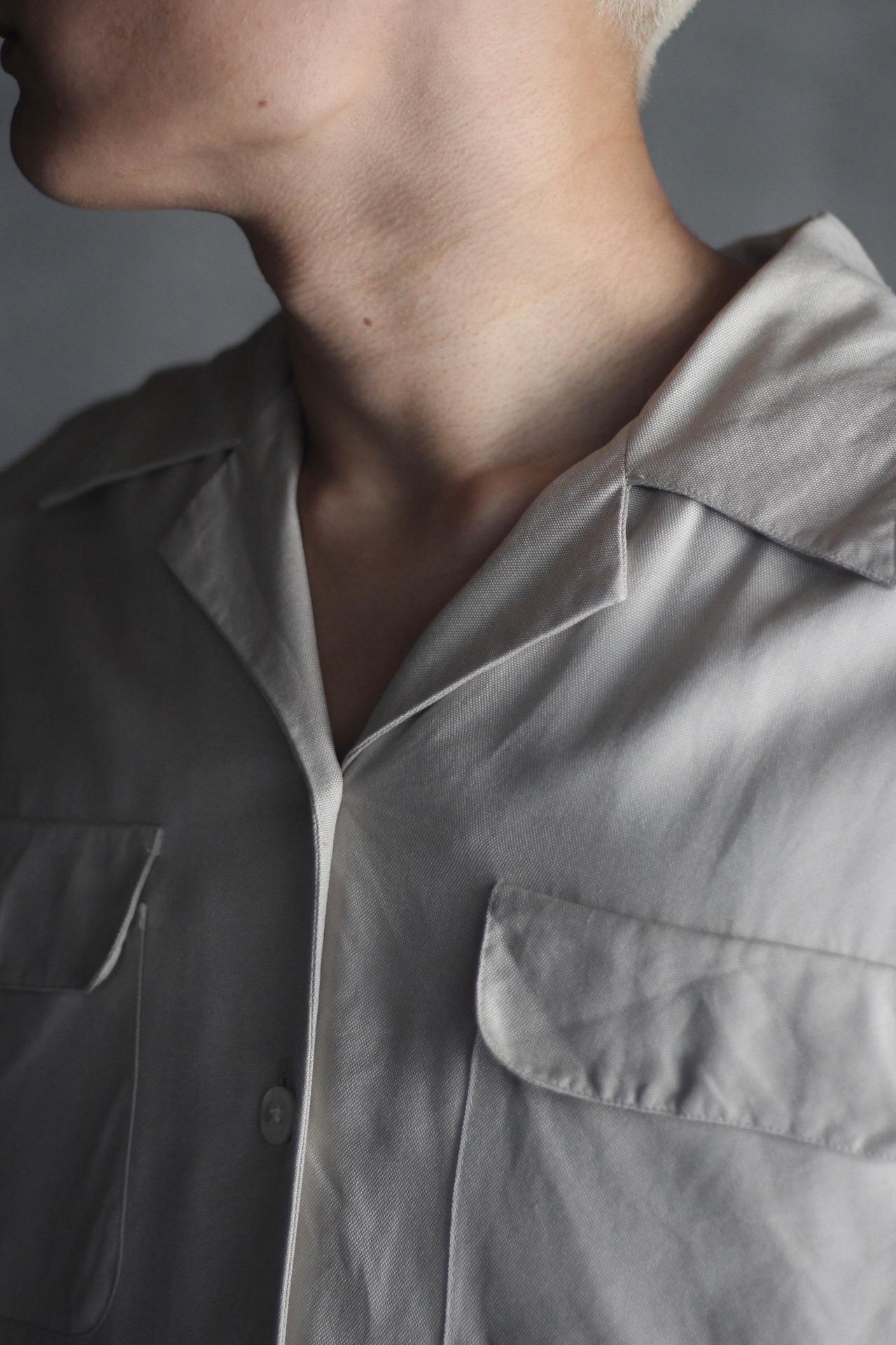 従来のオープンカラーシャツと比べても、襟元が少し大きい古着ならではの一着
