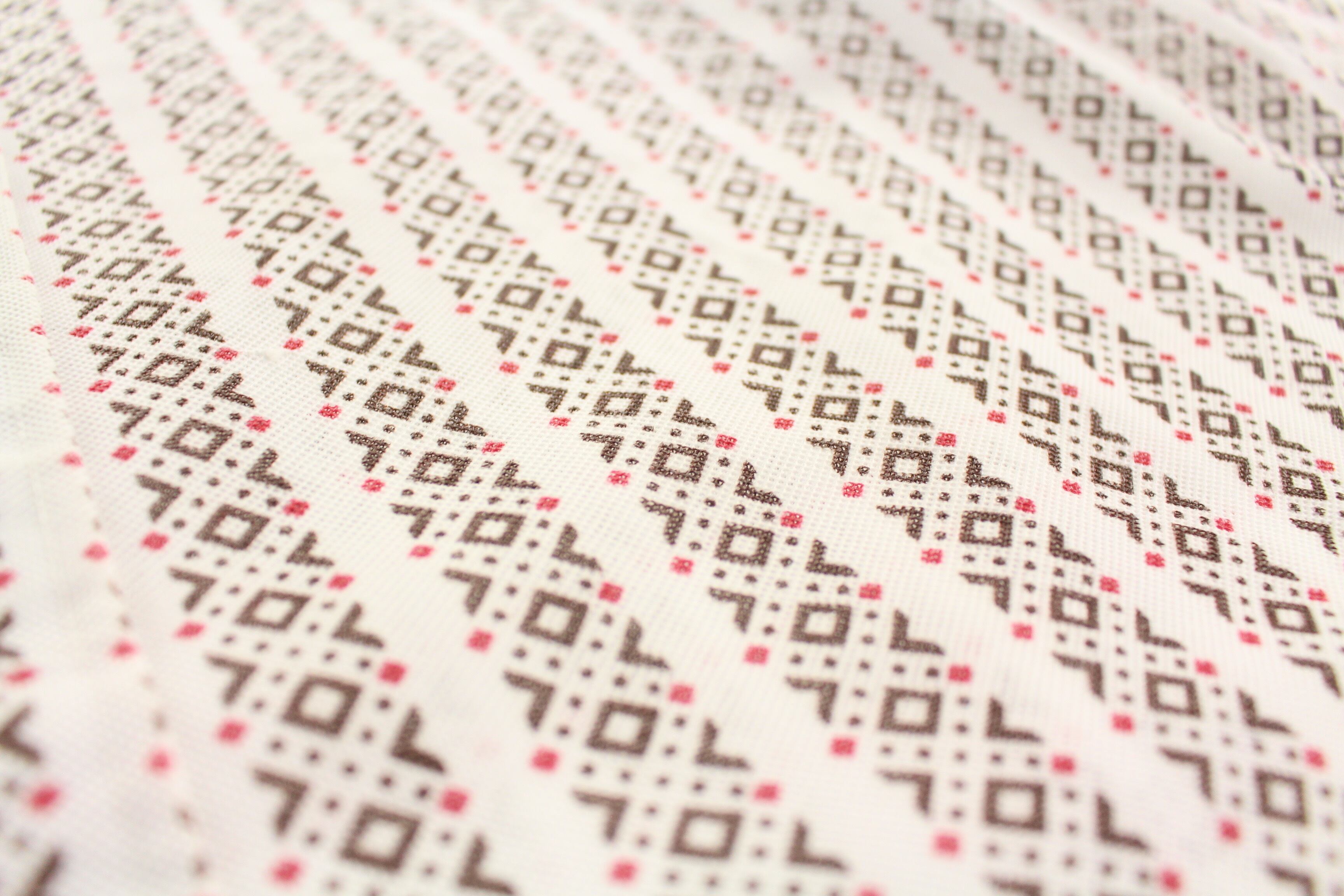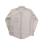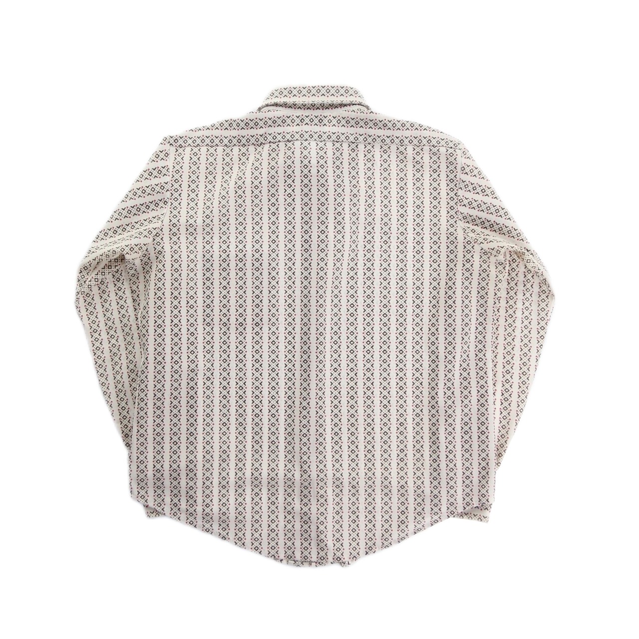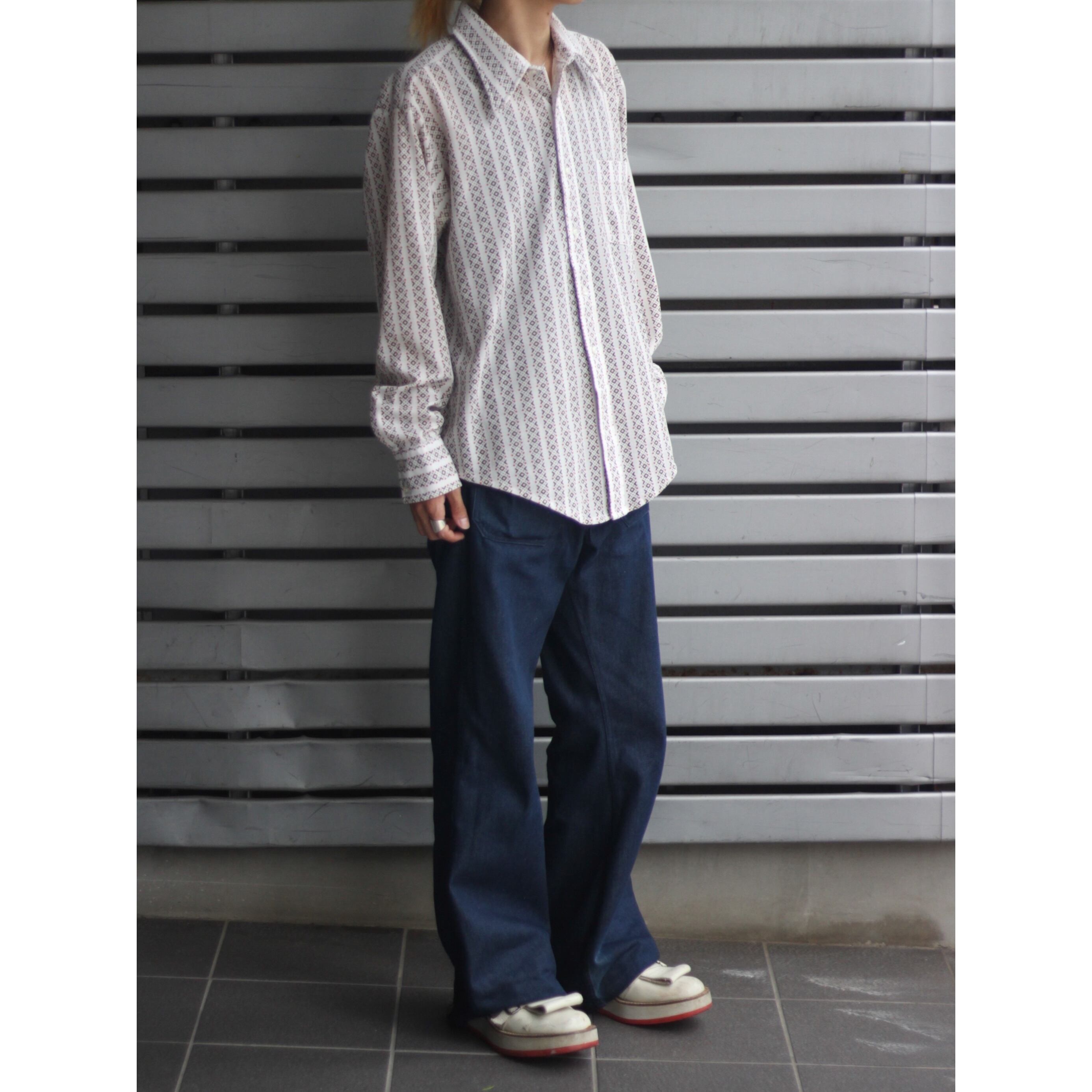 年代ならではな襟のカタチに使い勝手の良いホワイトベース、柄が格好良いストライプのプリントデザイン
