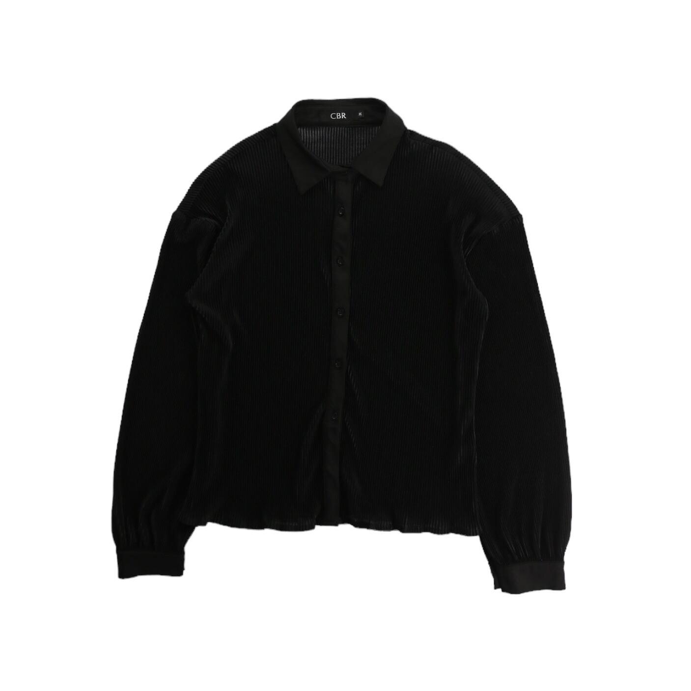 ポリ生地でややツヤ感があり雰囲気の良いシャツ。立体感なプリーツがモードな印象です☺︎