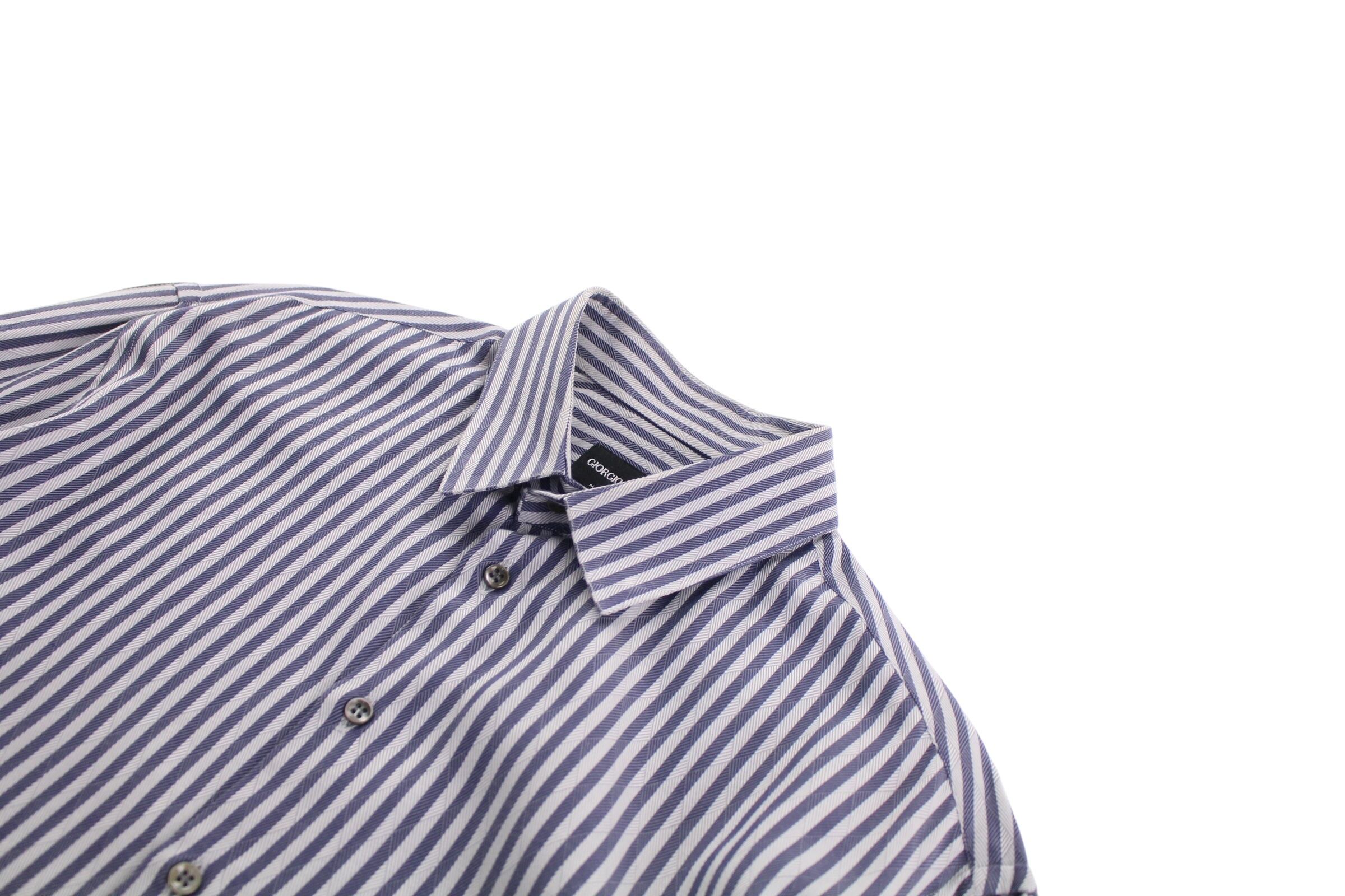 【OTSU】1990's "GIORGIO ARMANI" stripe dress shirt made in ITALY -10925-