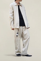 裾幅は約24.5cmと腿周りからそのままストンと落ちる形で変に癖がなく、セットアップ以外でも上にジャケットやブルゾン、春夏はシャツやプリントTなど持ってきても楽しめるかと