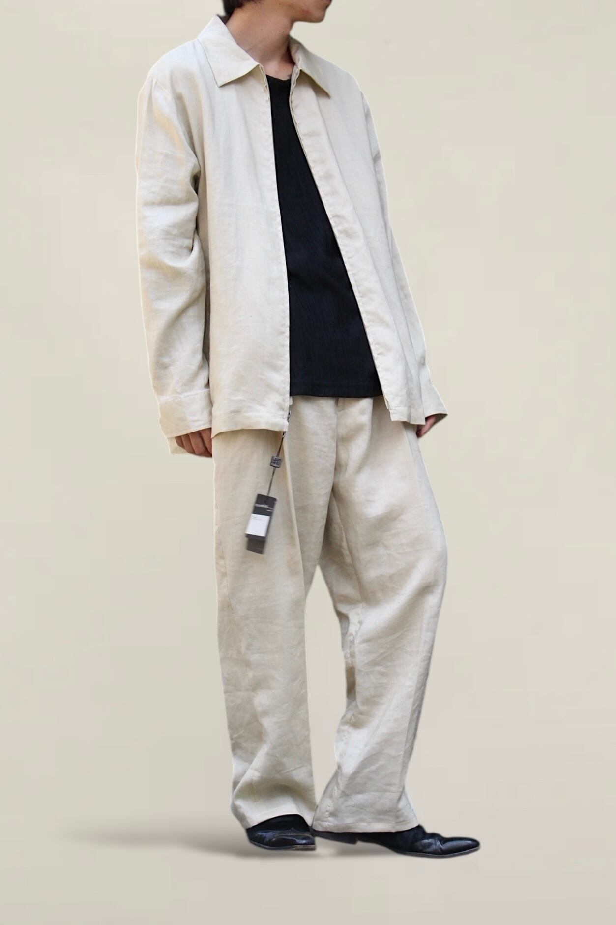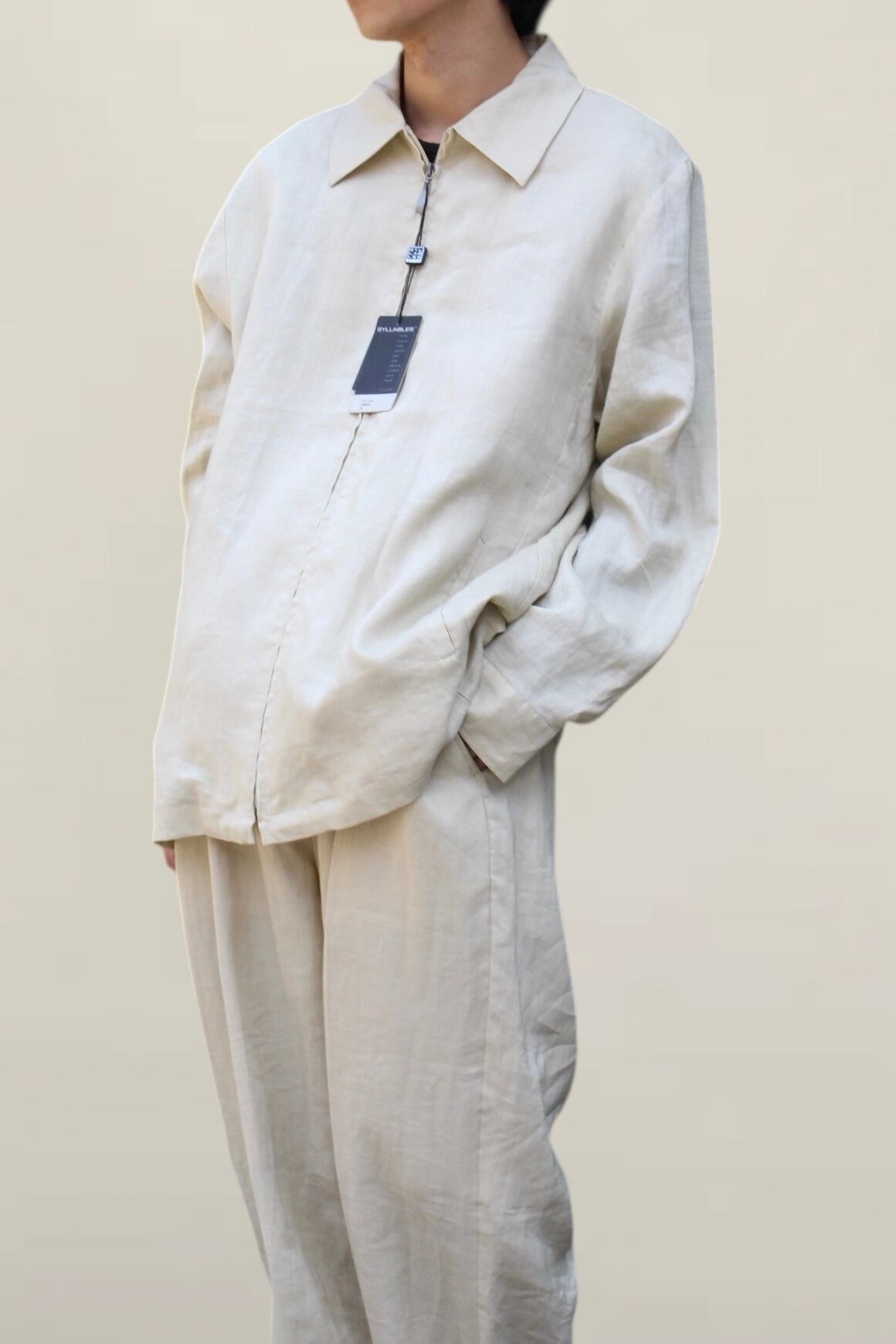 deadstock linen fabric zip up jacket 2-piece set up【OT-13477】