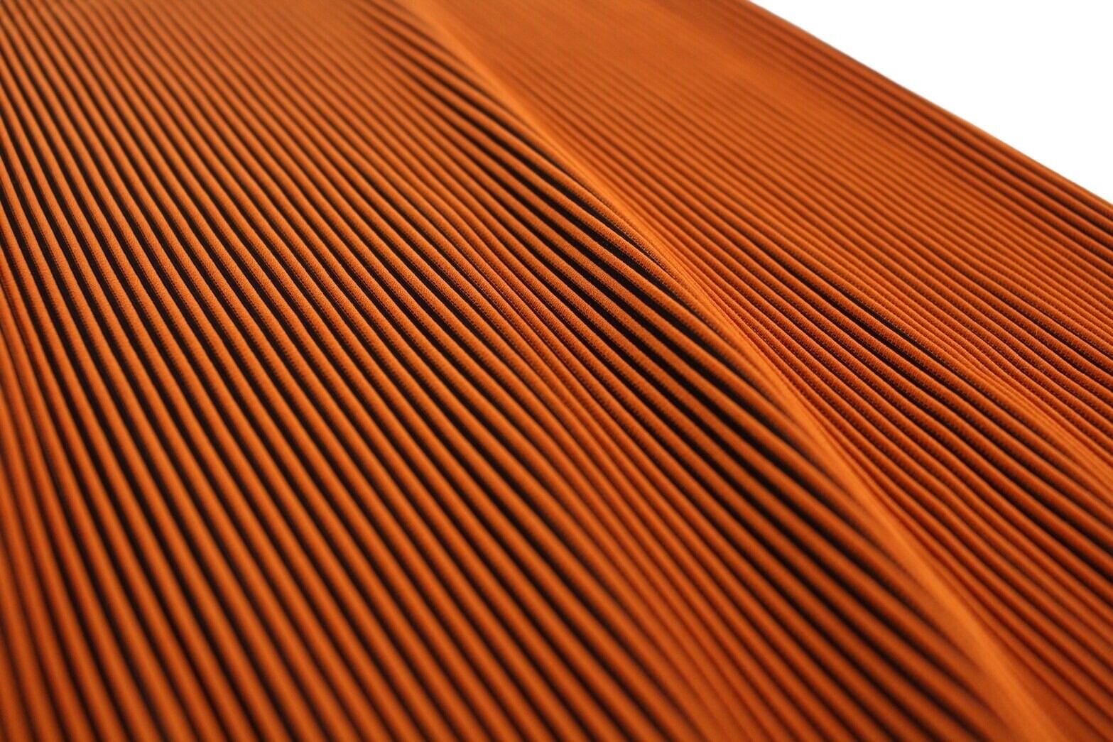 モノトーンと合わせて主役にしても、プリーツのオレンジが差し色となり、軽やかな印象になりそうで良さそうです◎