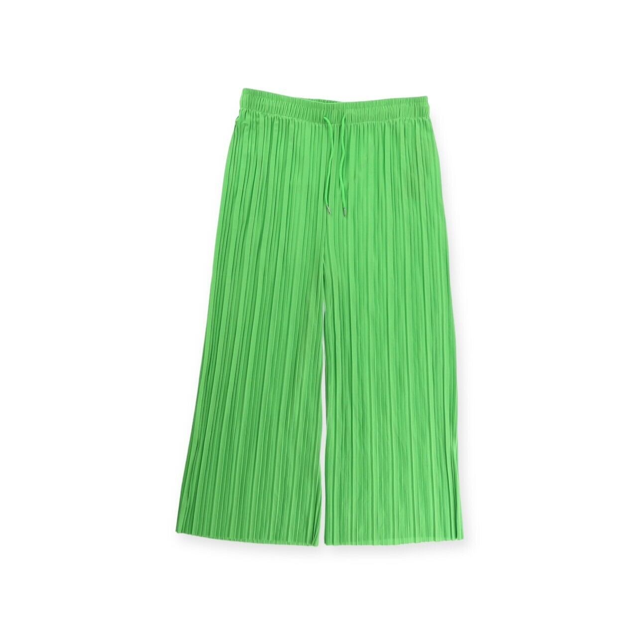 ライムグリーンカラーのプリーツパンツ。
