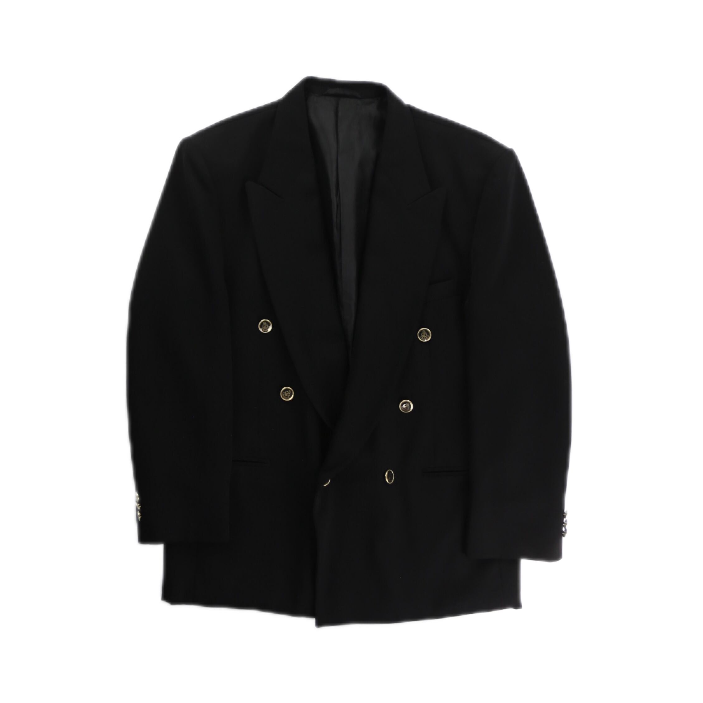 【CUBA】1990s vintage pure wool black double tailored jacket with gold button -7866-