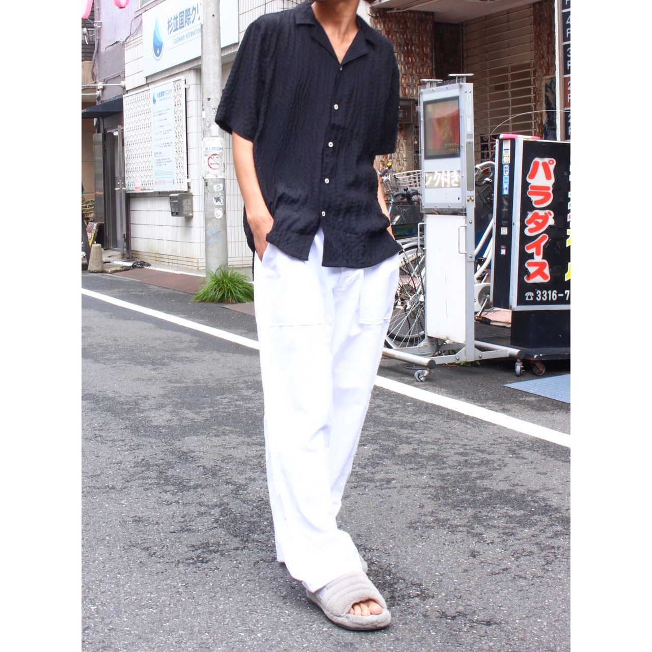 シルエットも足から離れたワイドストレートシルエット。