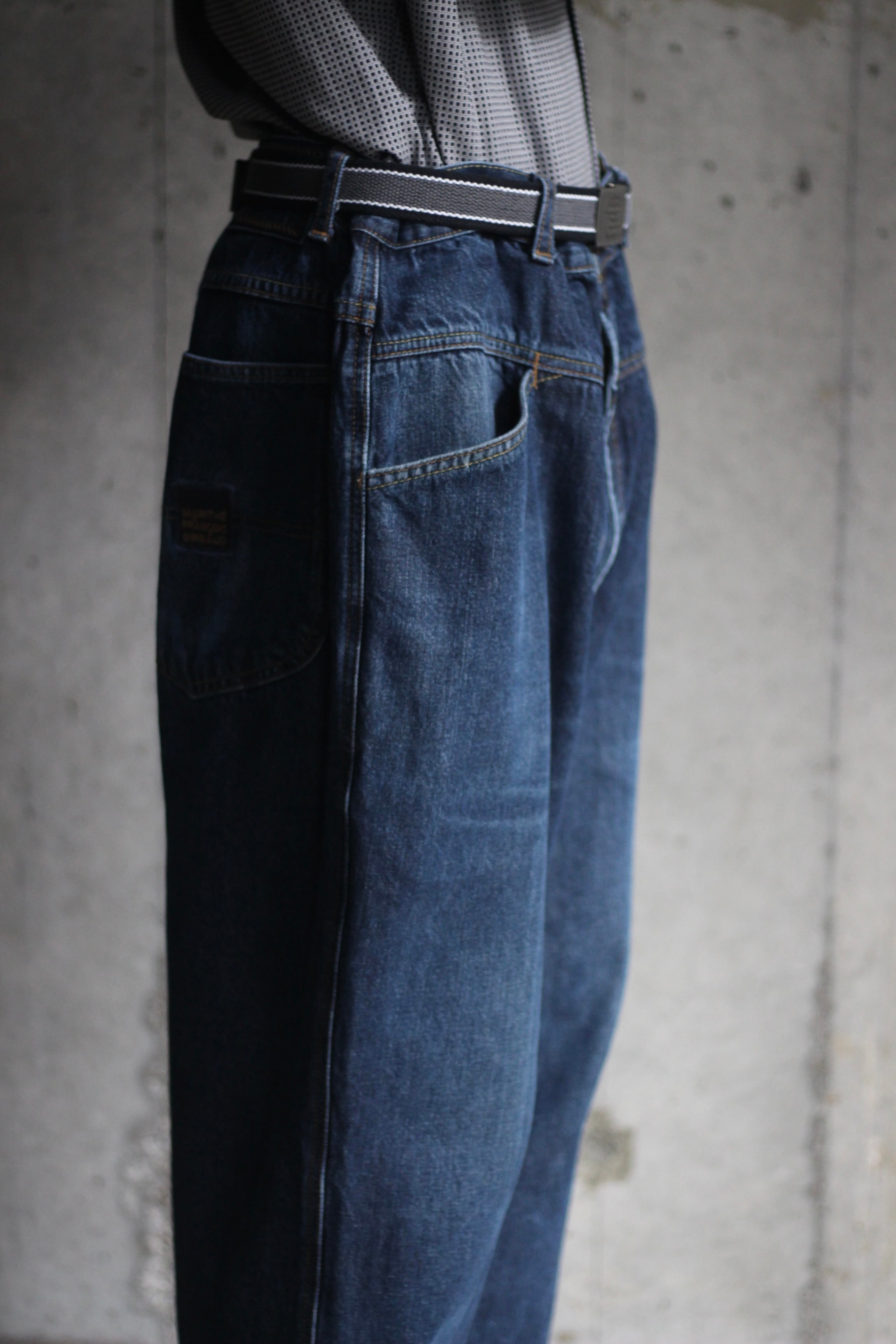 シルエットはもも周りが太く裾に向かってテーパードする形。Levi'sでいうところの550のようなシルエットに近いですがカットオフされてるのでストレートぽくも見えるのも良いデニム。