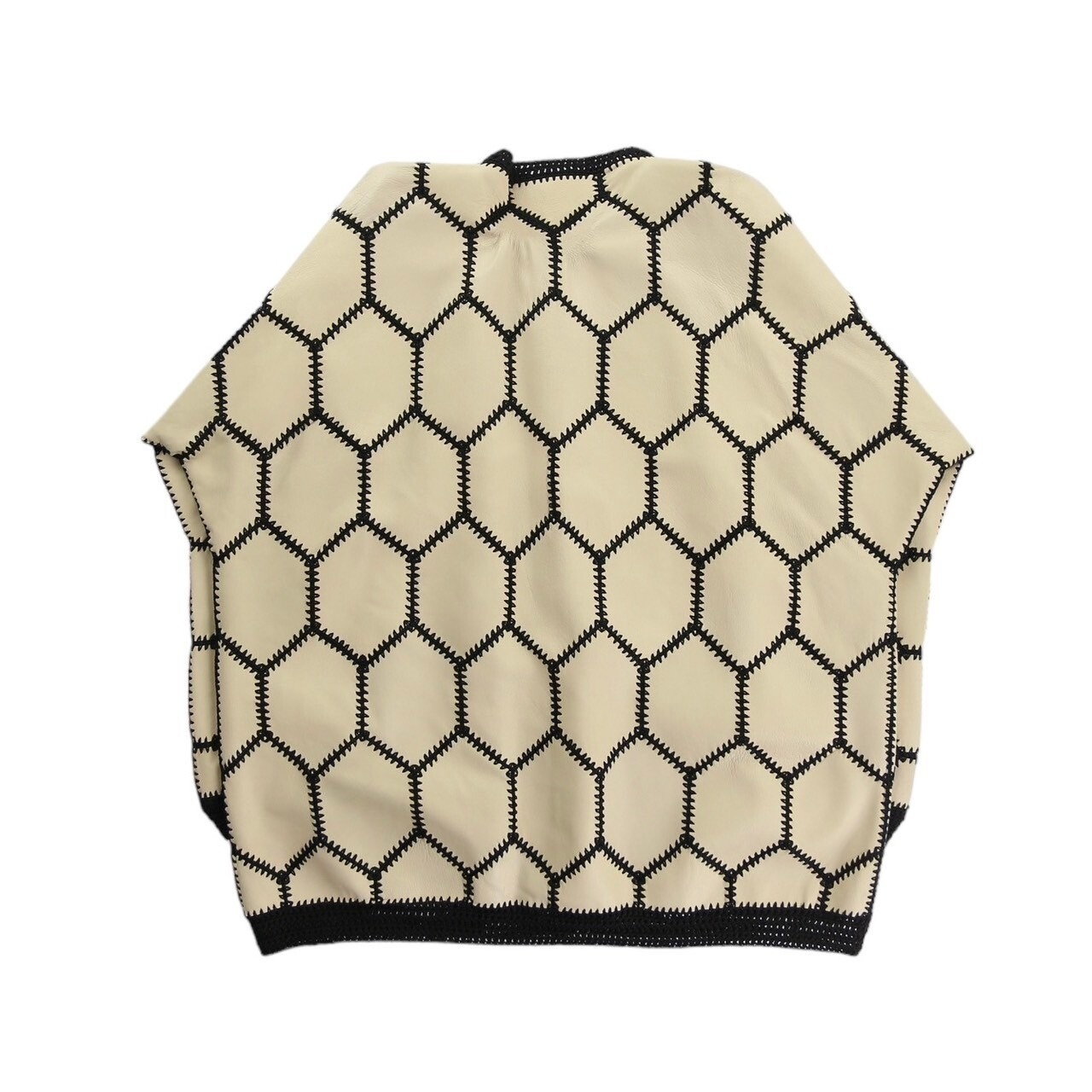 こちら六角形の皮をツギハギのようにつなぎ合わせて一枚の服に仕立てております。ハニカムパターンのようにも見えますね。