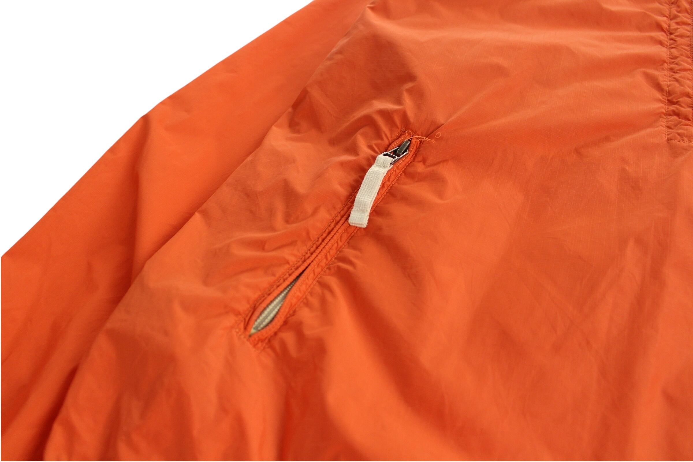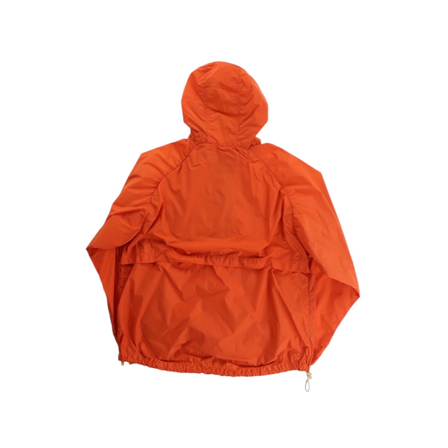 ハーフジップ仕様のナイロンフーディーになっていて首,腰回りのドロコード付き。