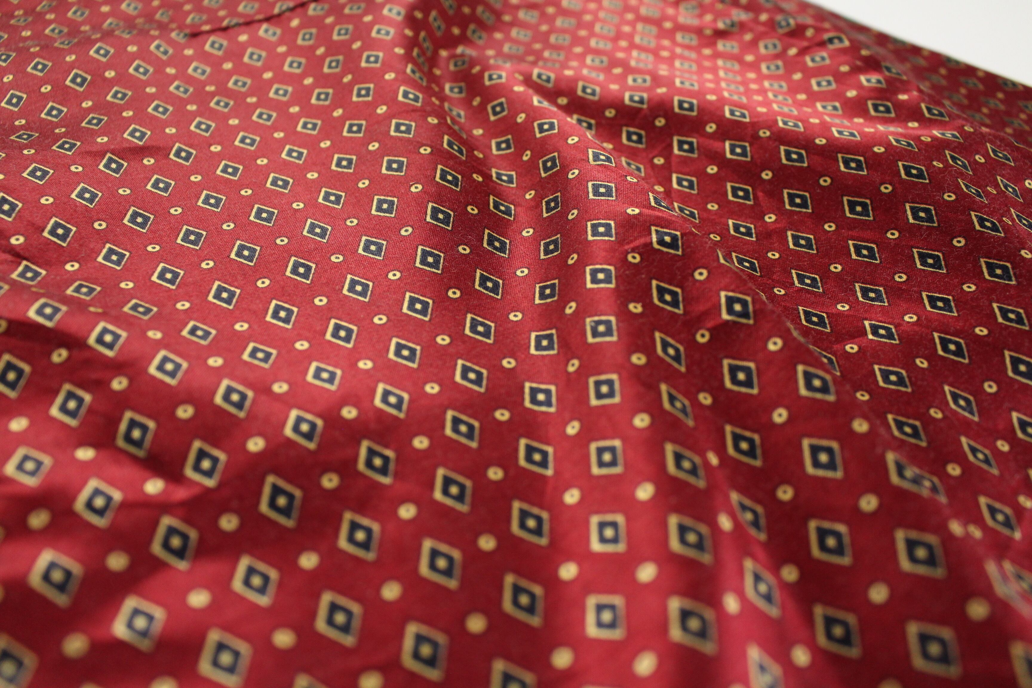 此方は深みのあるレッドカラーにヴィンテージルックスな小紋柄がイケてる一枚です。