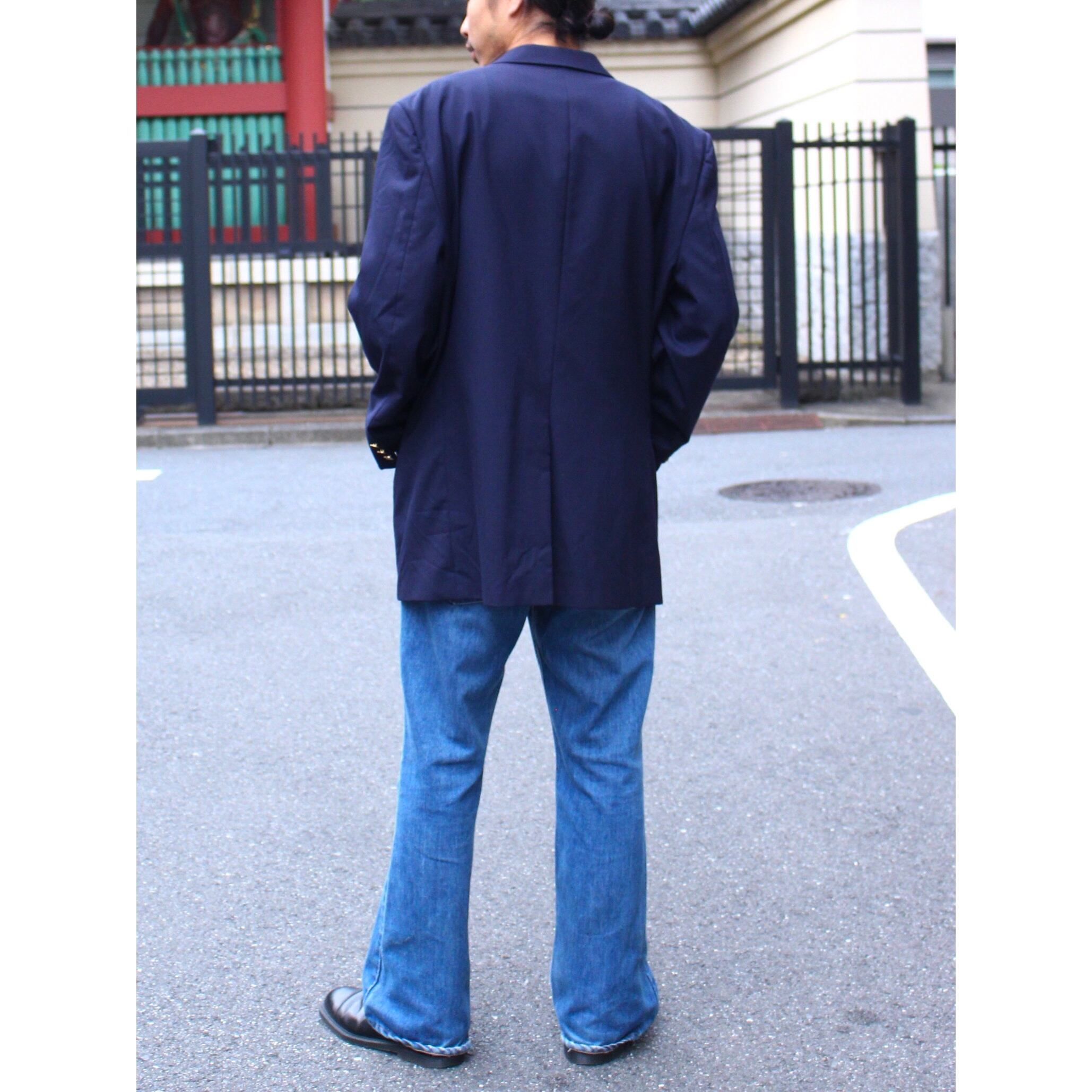 【CUBA】1980s vintage Burberrys navy single blazer with gold button made in USA -7899-