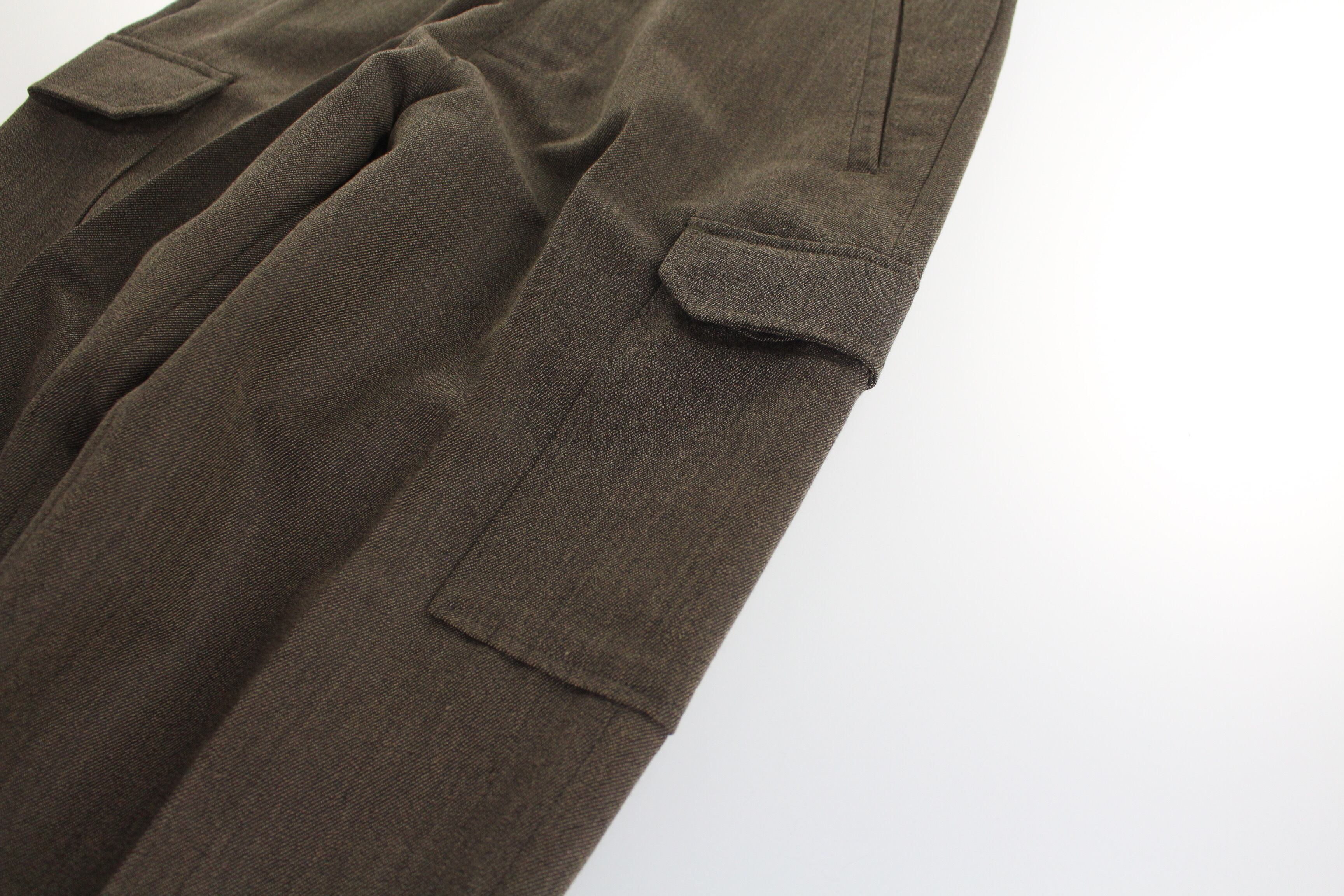 所謂ノータックのスラックスにカーゴポケットのつくカーゴスラックスです。