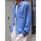 私的愛してやまない素材、古いレーヨンならではなたぷっと垂れるような生地で色気のあるドレープ。フロントはループカラー仕様のオープンカラーにボックスシルエットの50sディテール。