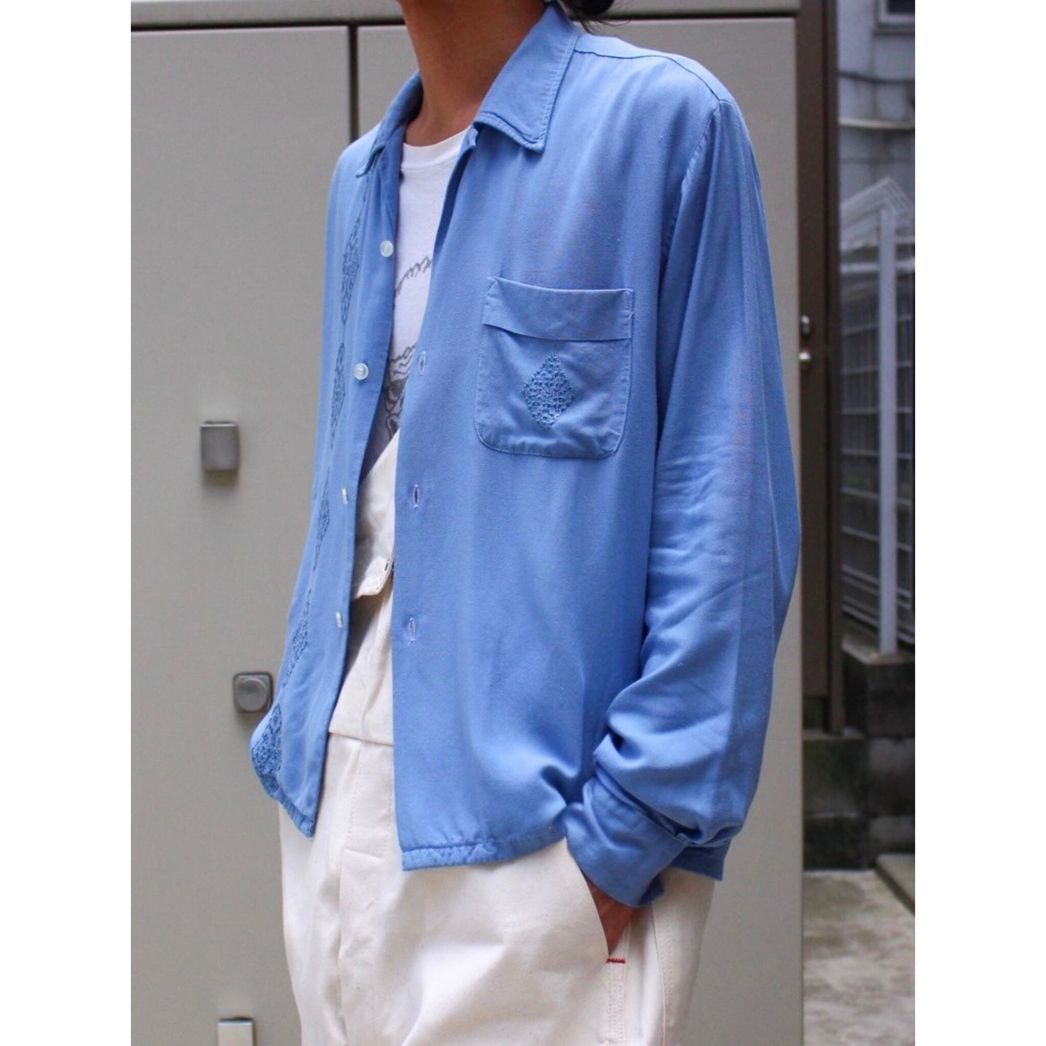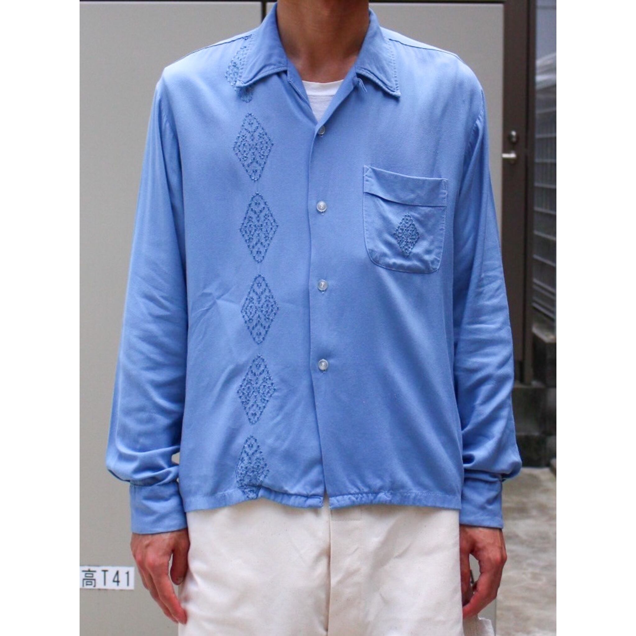 【CUBA】 1960s vintage SEARS embroidery design rayon open-collar shirt -7906-