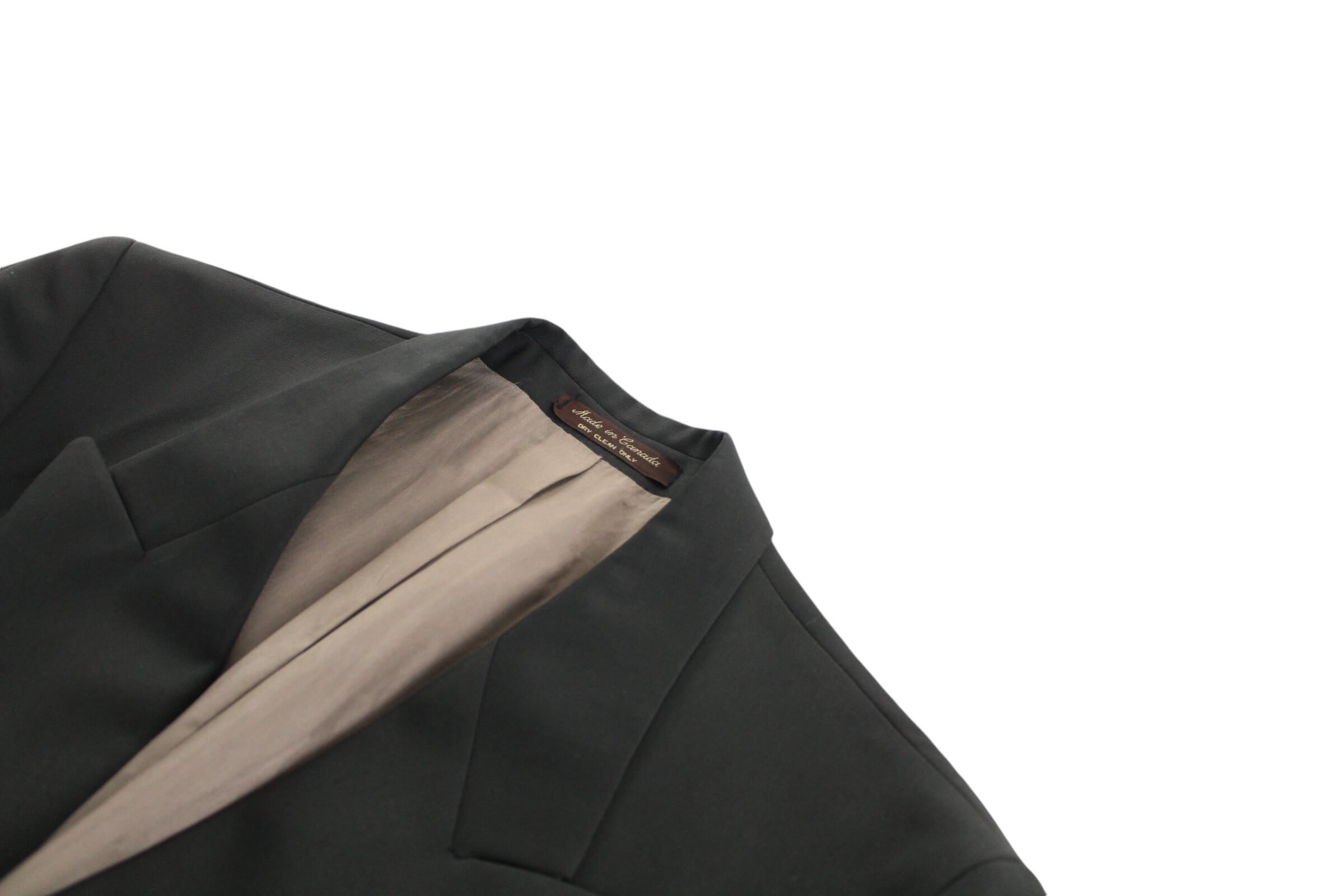 ファブリックはウールギャバジン。生地の滑らかさやツヤ感も感じる素晴らしい2ピース。
