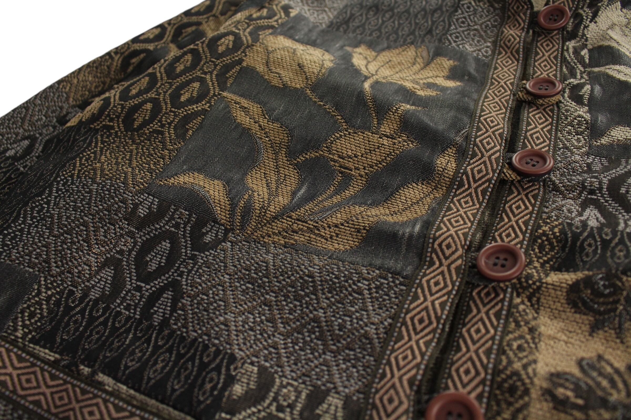 ゴブランならではの高級感を感じます。切り替えパターンで総柄が織られているのも関わらず、うるさい印象がなく光沢グレー色の落ち着いた風合い。