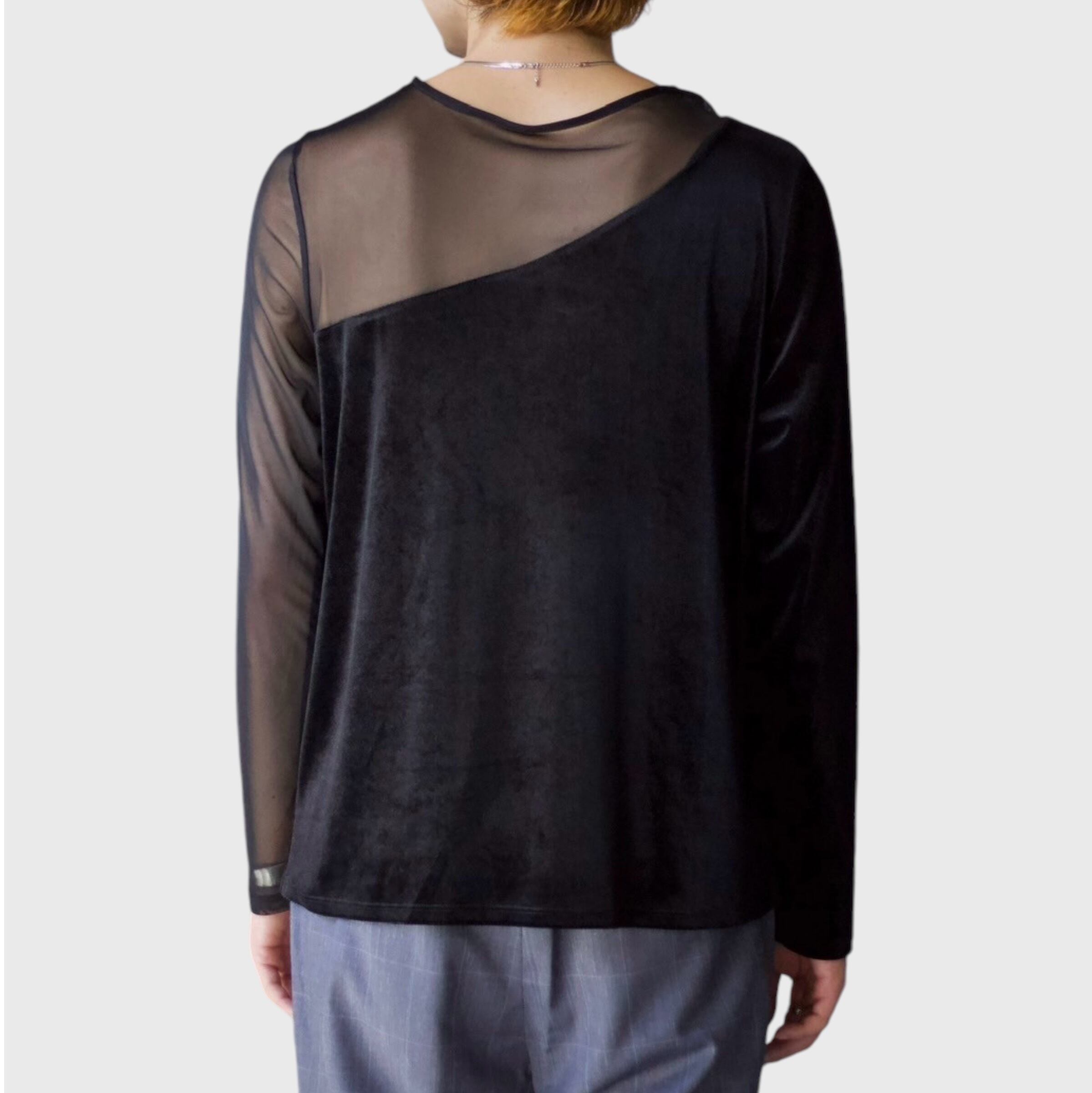 DEADSTOCK sheer switching long sleeve velor cut&sew