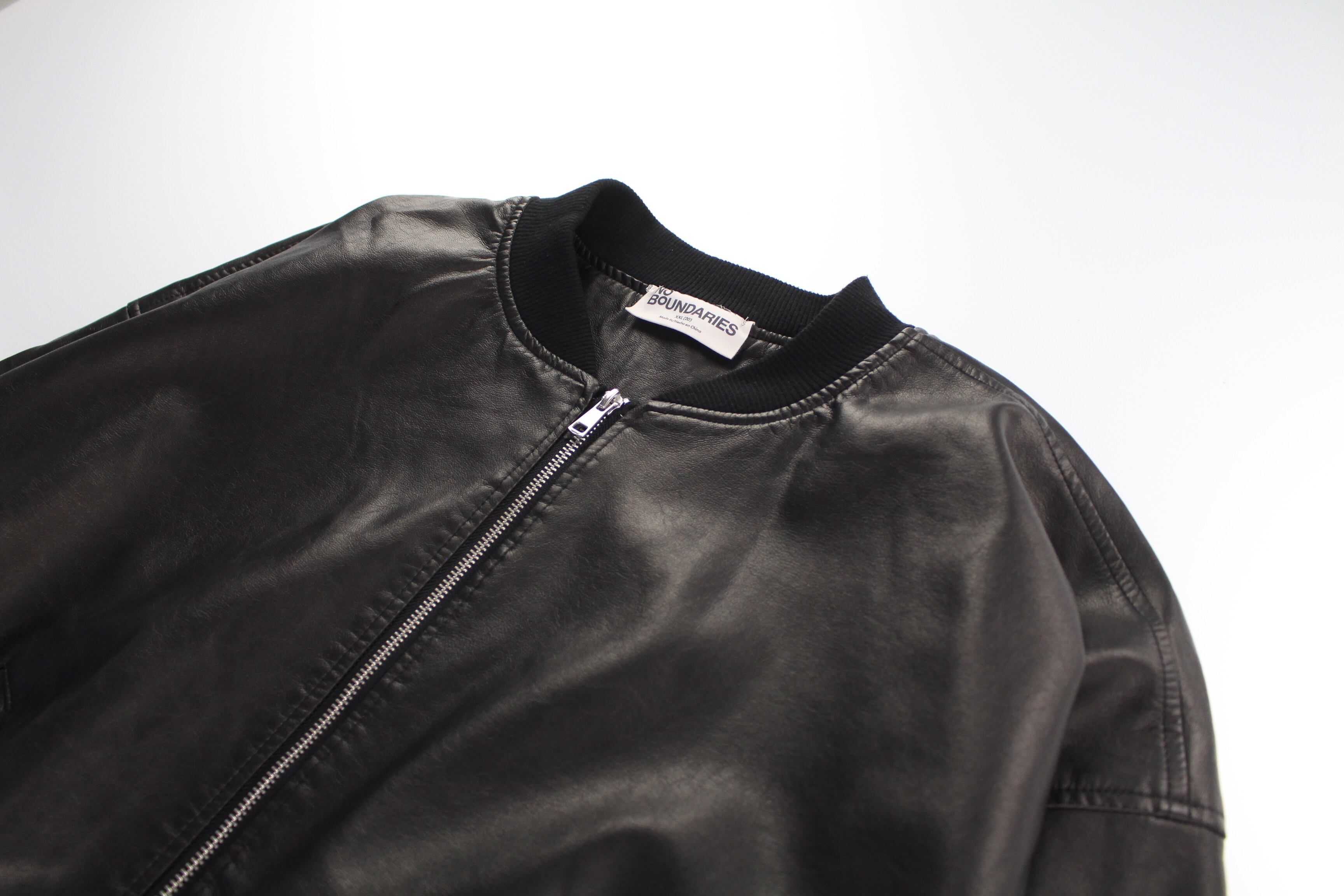 個人的に注目しているno boundariesより、フェイクレザー素材のジップアップブルゾン。