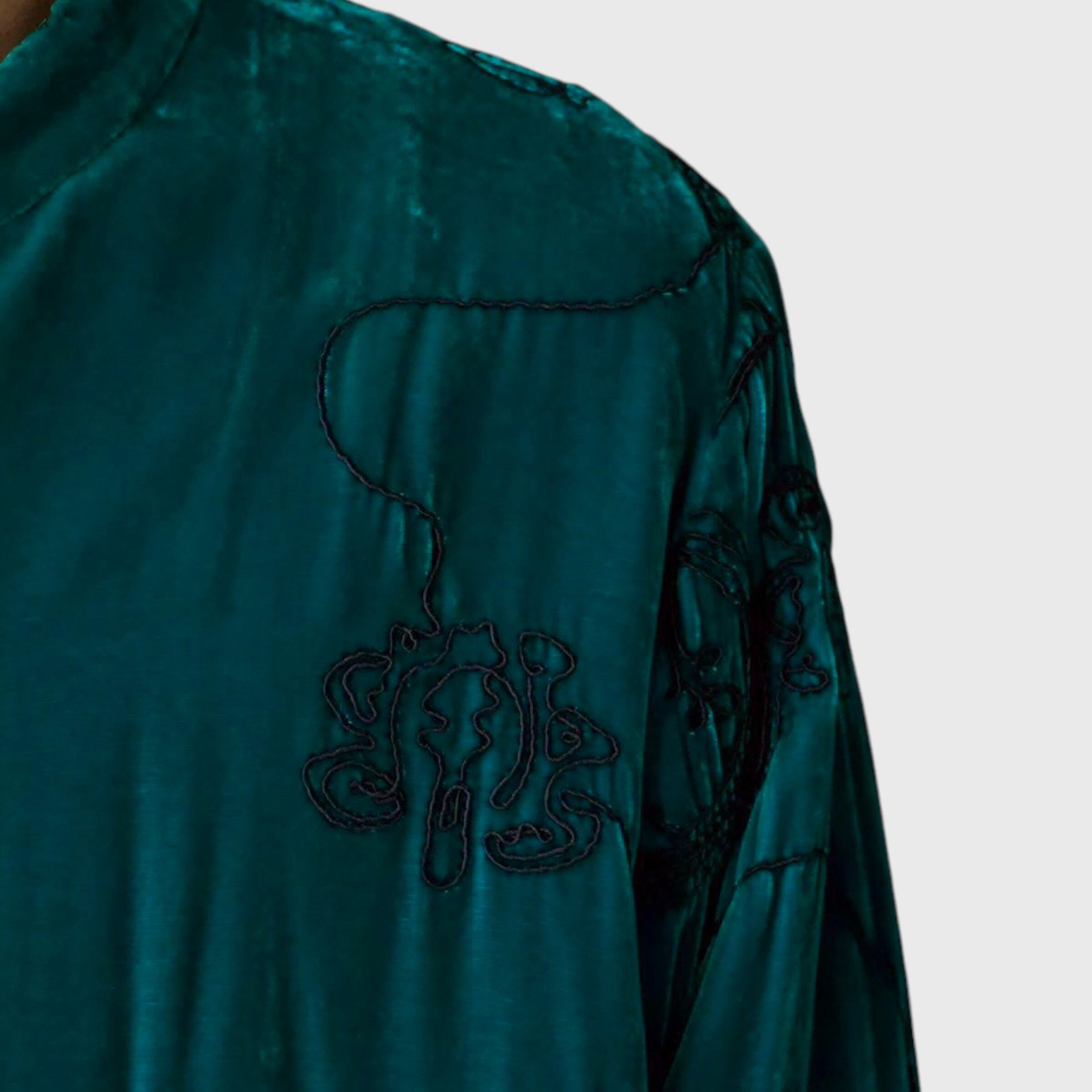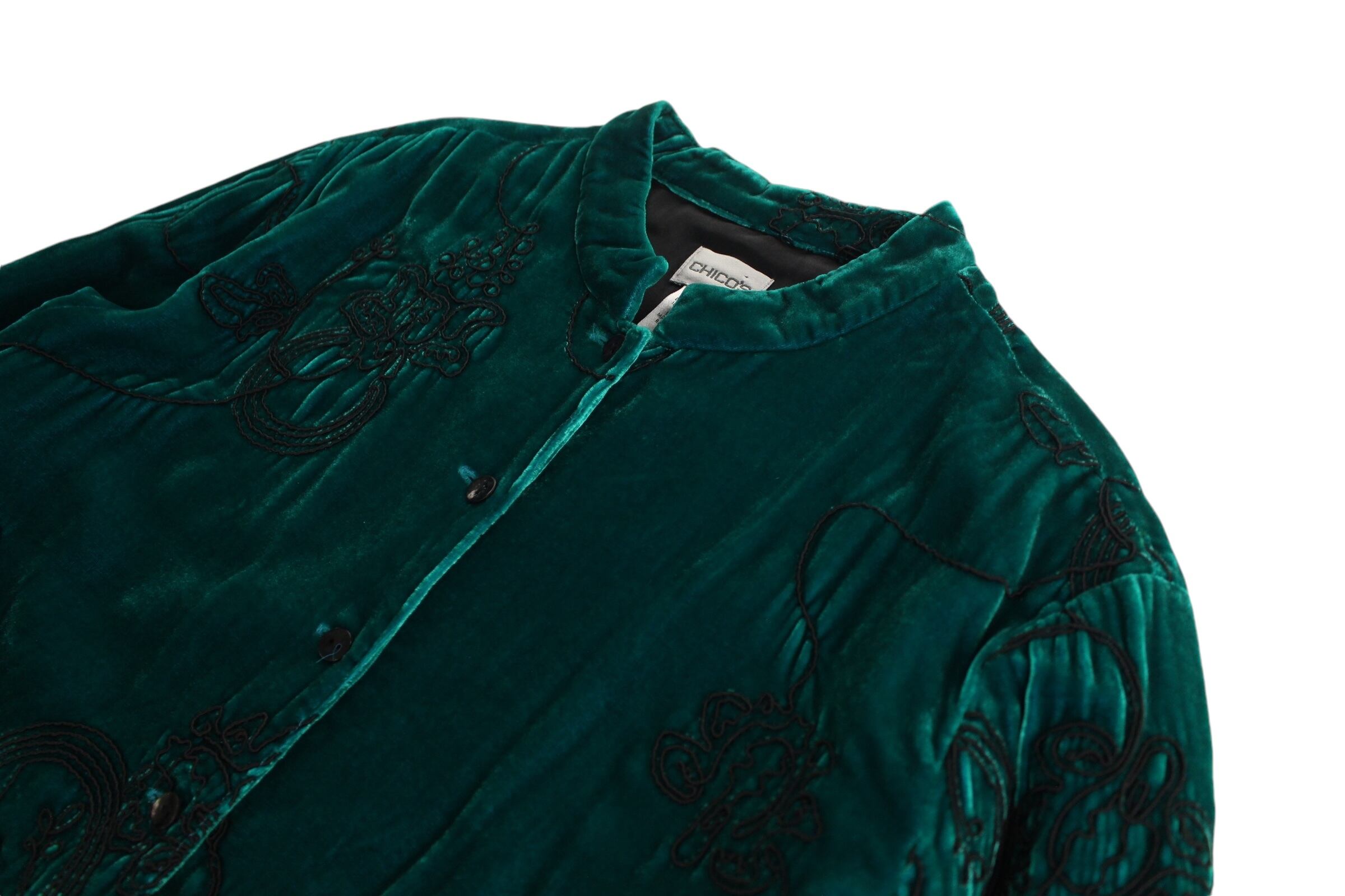 【MAKE MY DAY】 "CHICO'S" silk×rayon embroidery design velours jacket -0026-