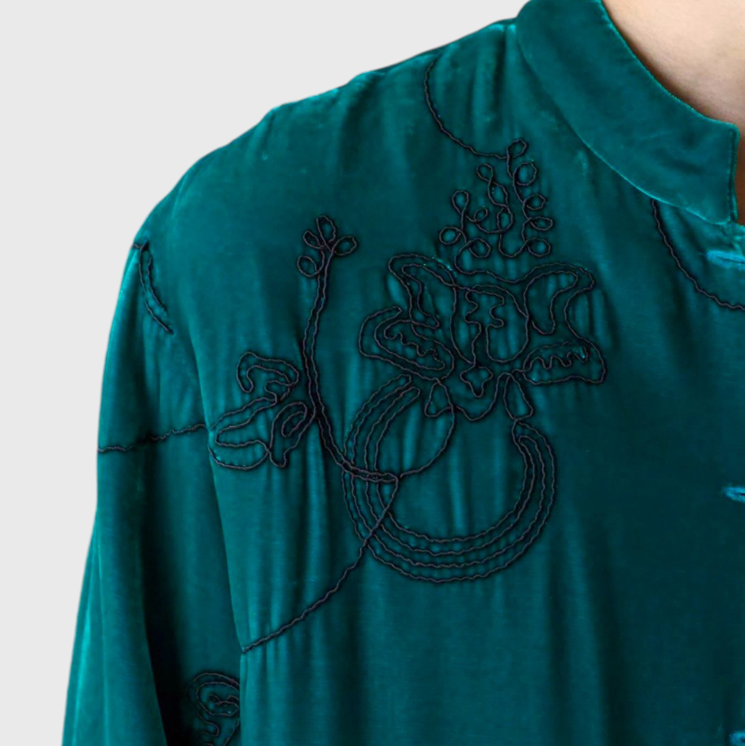 刺繍デザインが各所に散りばめられており高級感ありつつ一枚でサマになります!