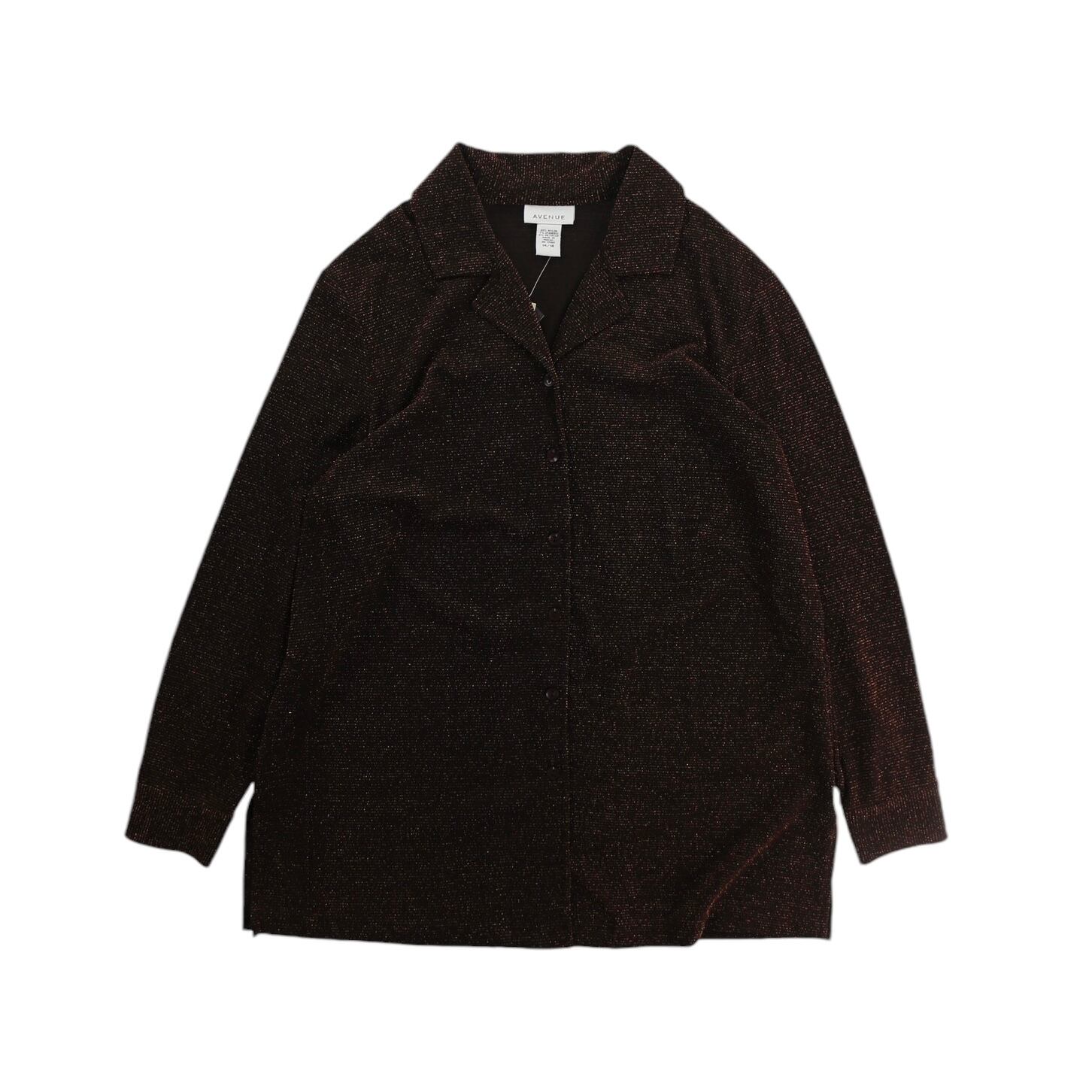 ボディは赤茶のようなラメが散りばめられた生地。きらきらとした雰囲気が洒落た1枚。いやらしい印象なく着ていただけますね〜