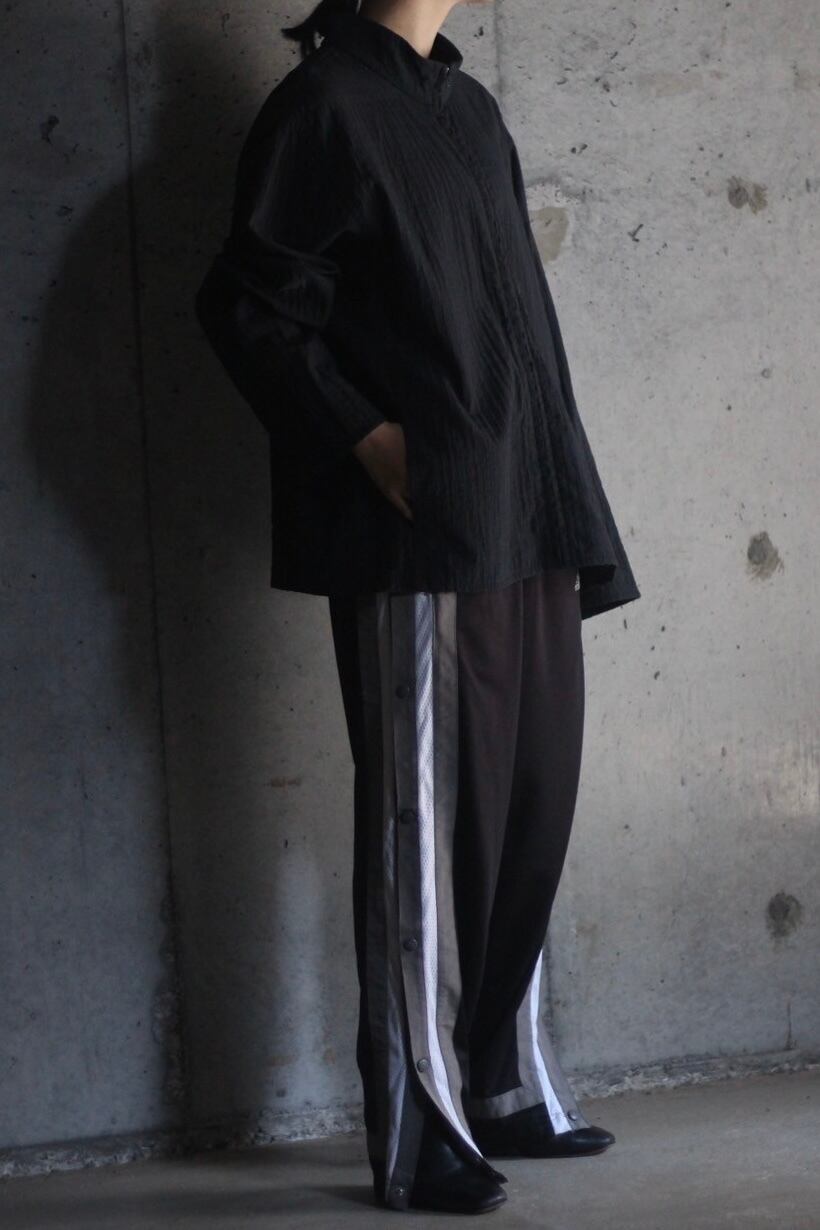 モードチックなブラックカラーリングに程よいエッジの効いた全体的な皺加工がかなりクールな一着。