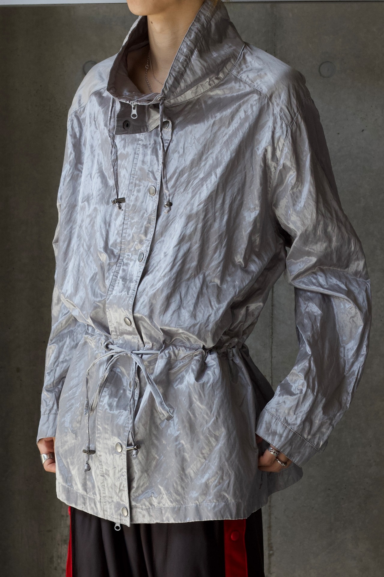 【MAKE MY DAY】high neck silver half coat with draw cord -2215-
